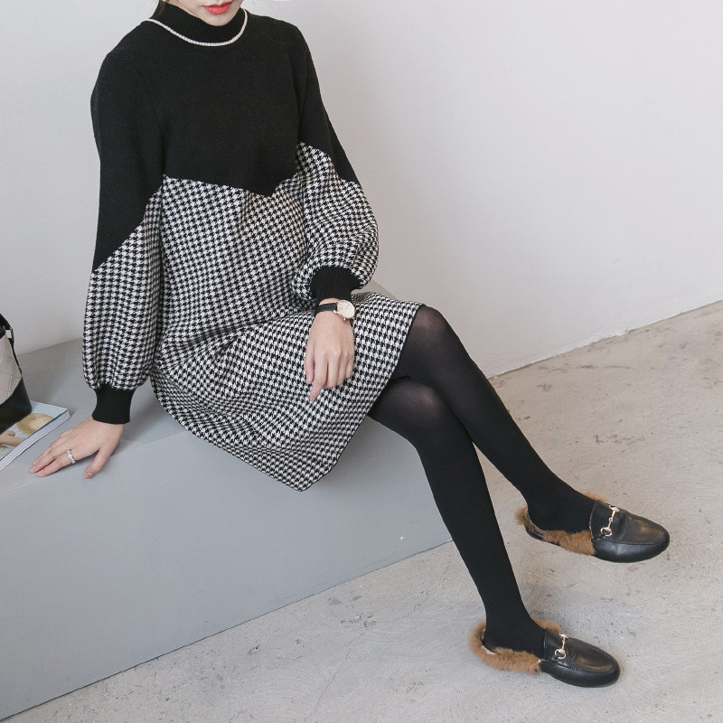Осеннее термобелье, зимний модный свитер, длинное платье для беременных, юбка, в корейском стиле, свободный крой, средней длины, городской стиль
