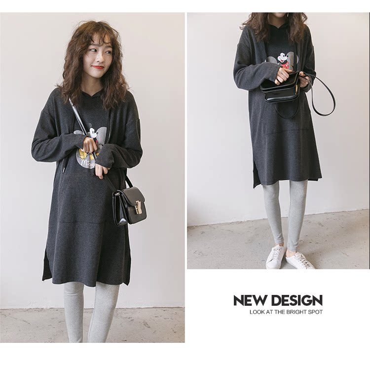 Мультяшная длинная футболка для отдыха для беременных, трикотажный лонгслив, пуховик, модное платье с капюшоном, средней длины