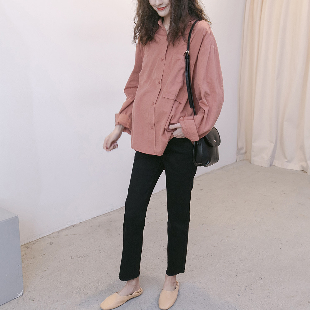 Весенняя модная короткая рубашка для беременных для отдыха для кормящих грудью, в корейском стиле, оверсайз