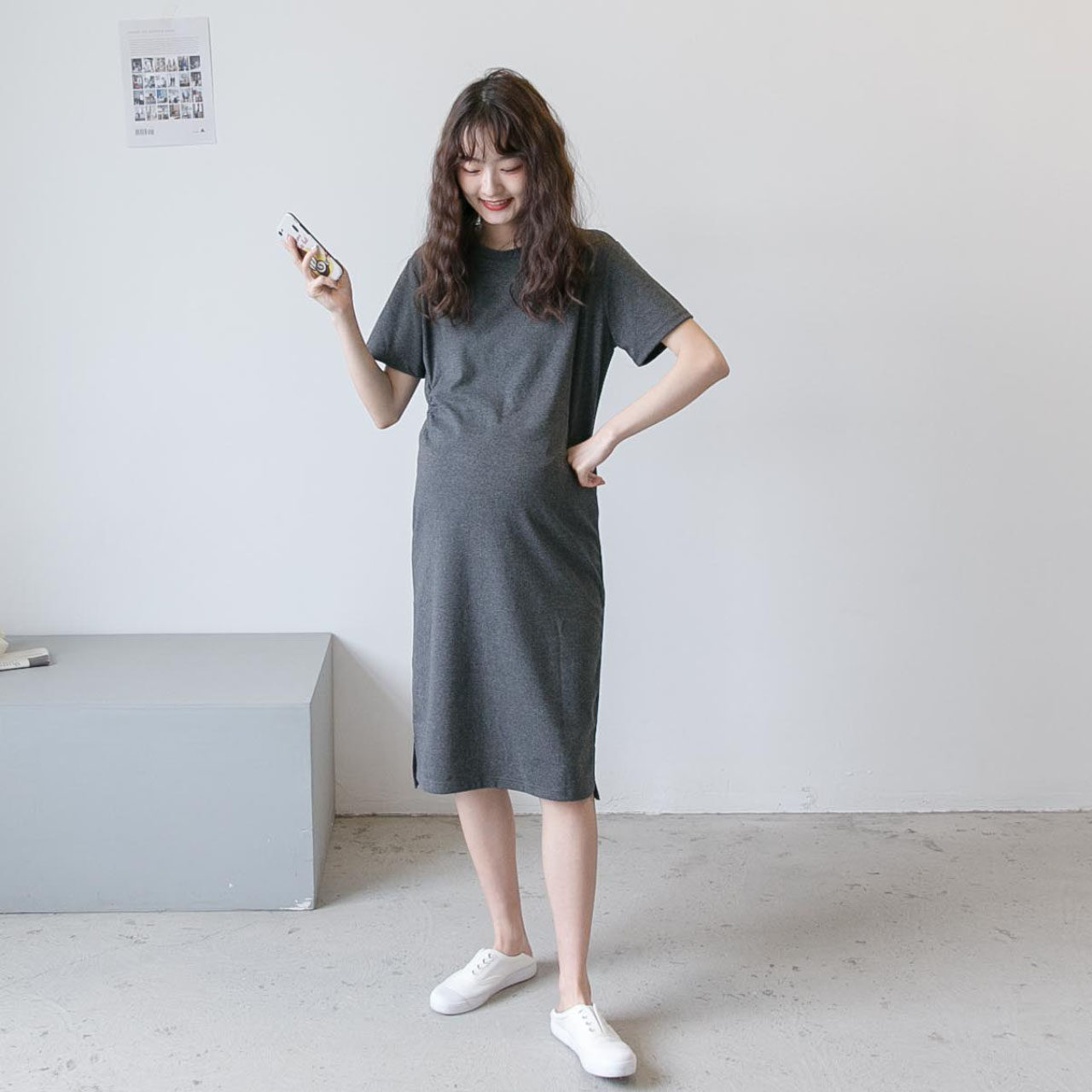 Летняя одежда для беременных, модное платье-футболка, длинное однотонное хлопковое платье, средней длины, короткий рукав