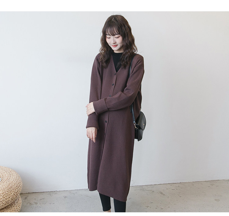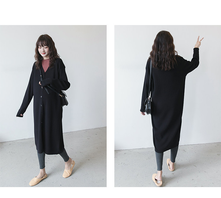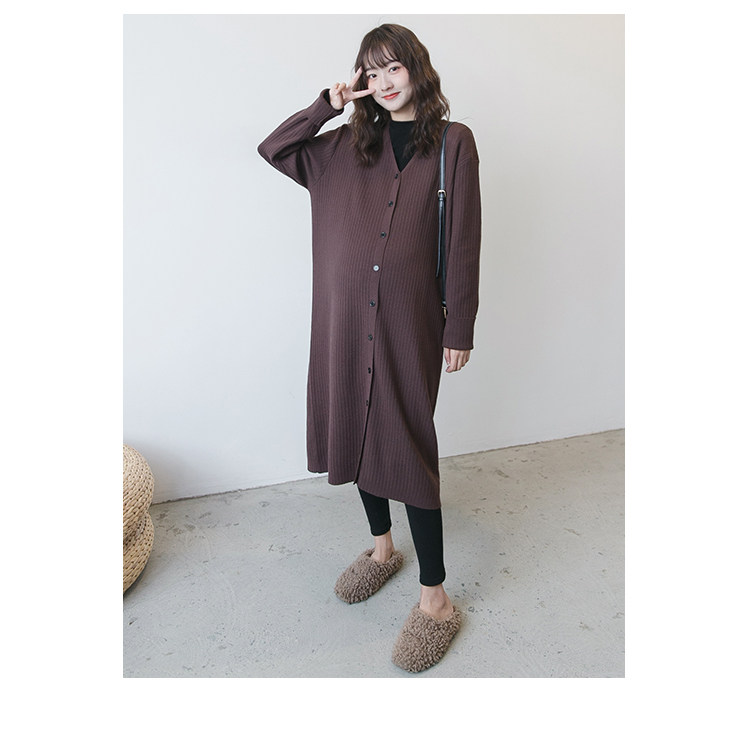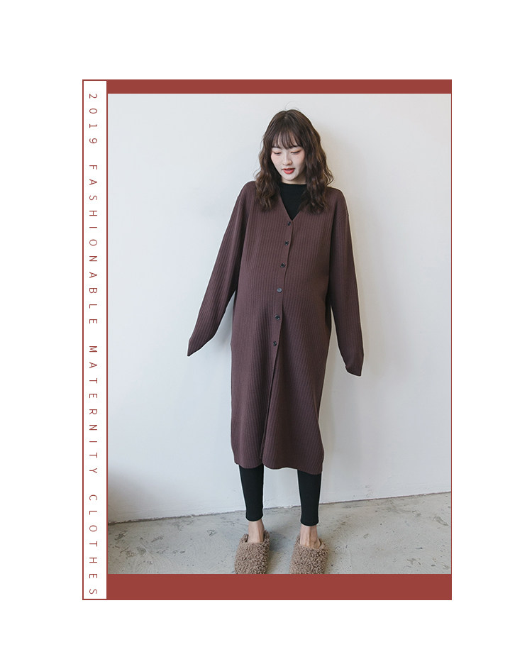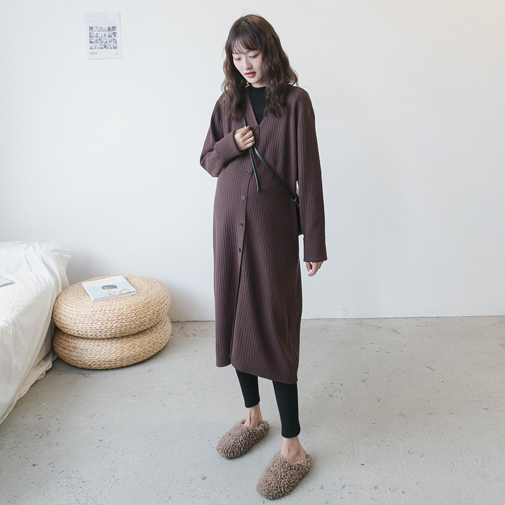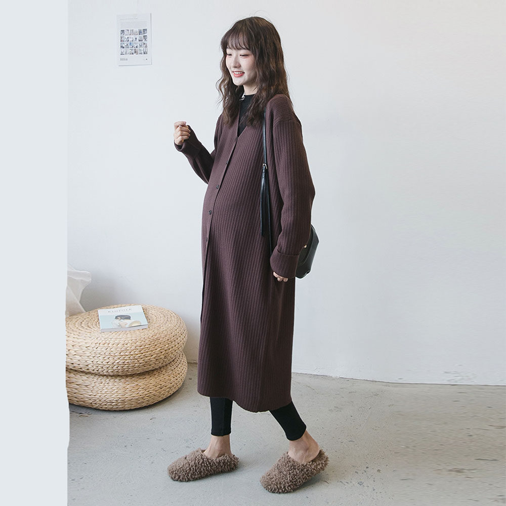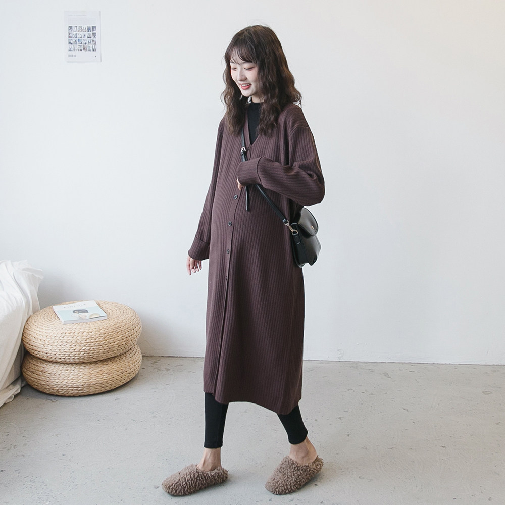 Осенний демисезонный комплект для беременных, кардиган, длинная куртка, V-образный вырез, в корейском стиле, оверсайз, длина макси