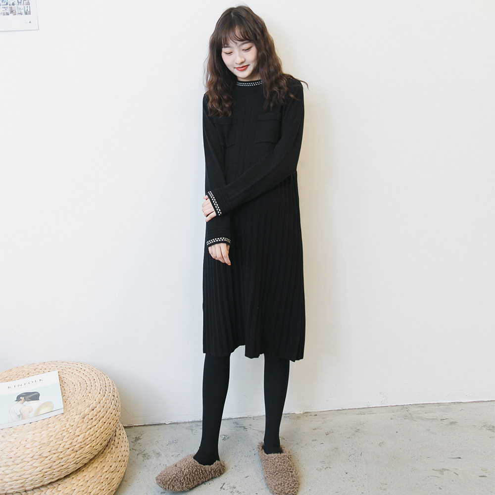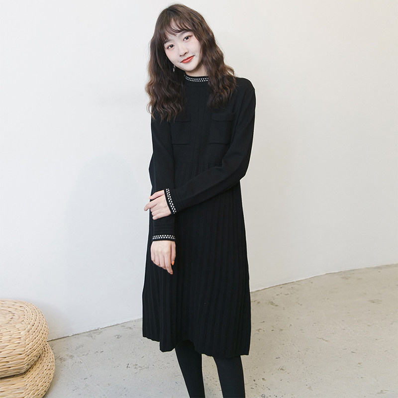 Осеннее демисезонное модное длинное шерстяное платье для беременных, в корейском стиле, в стиле Шанель, по фигуре, плиссированная юбка