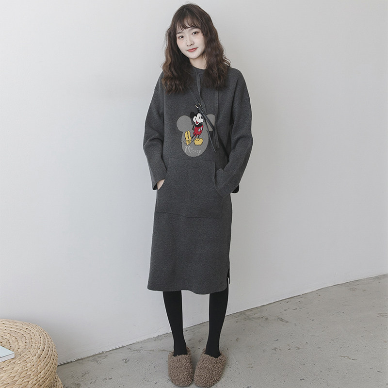 Осеннее демисезонное трикотажное модное мультяшное трикотажное платье для беременных, длинный весенний свитер с капюшоном, длина макси, увеличенная толщина