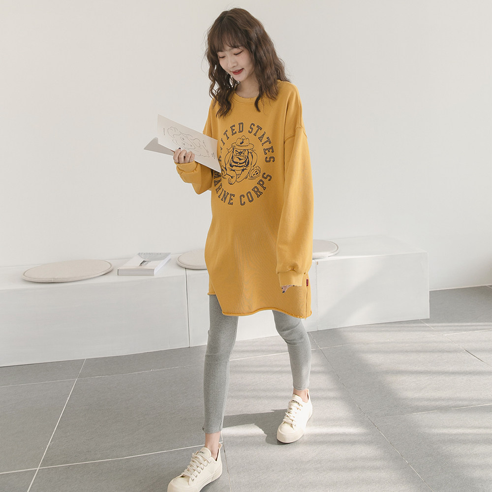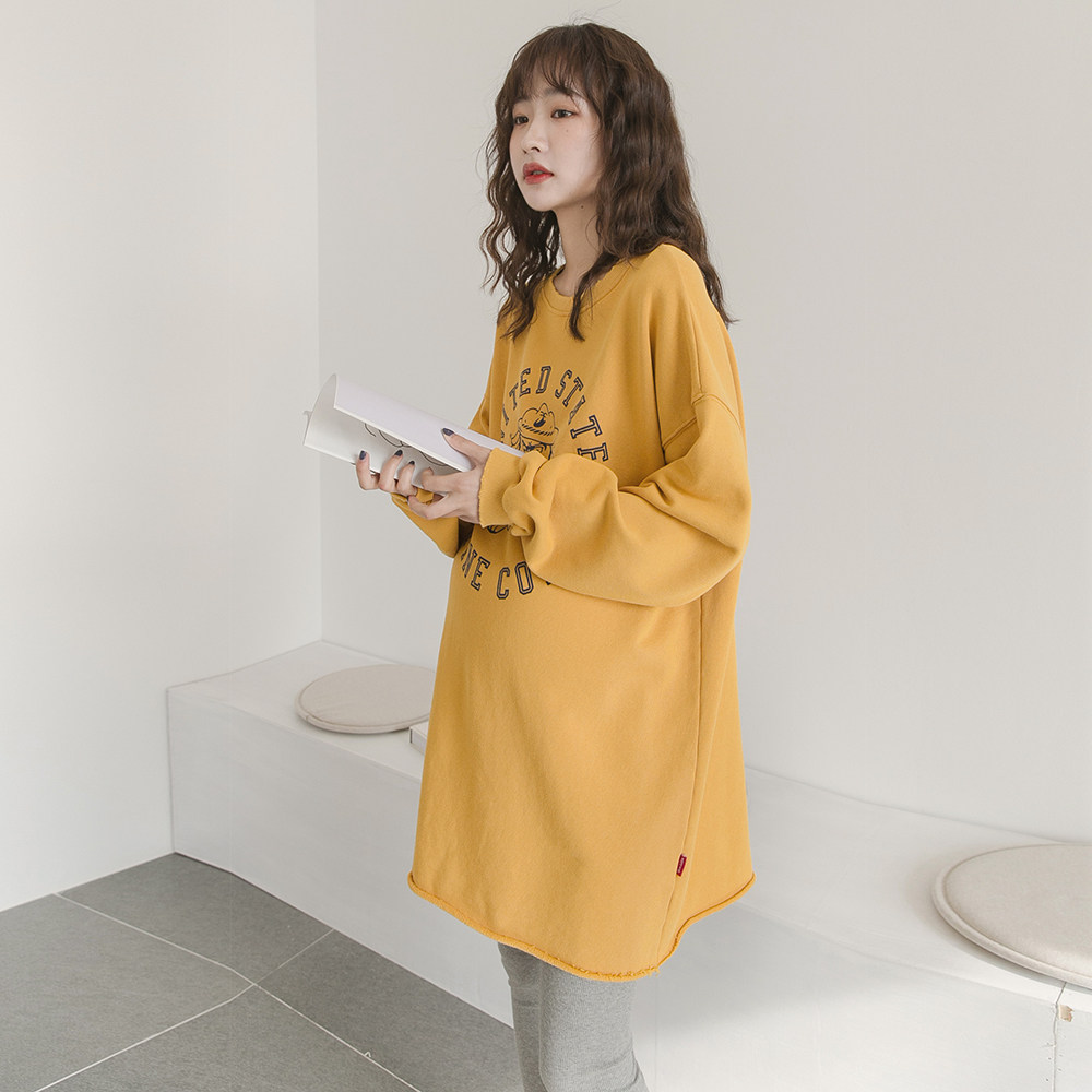 Длинная хлопковая футболка для беременных, весенний лонгслив для отдыха, базовая толстовка, платье, средней длины, коллекция 2021