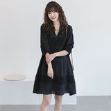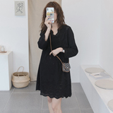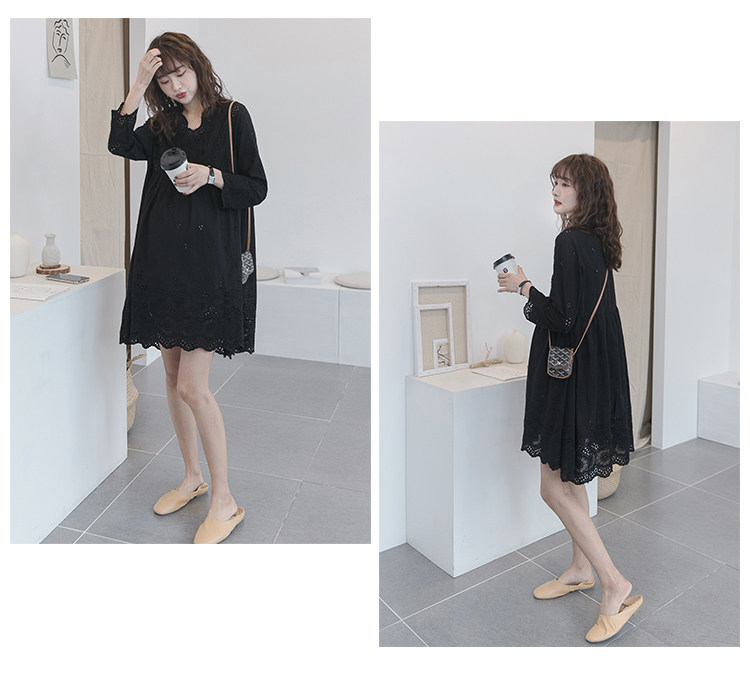 Осеннее кружевное длинное модное черное платье для беременных, длина миди, свободный крой, в корейском стиле, в западном стиле, подходит для подростков