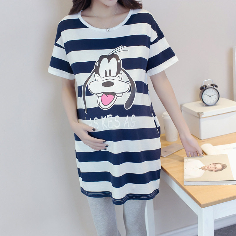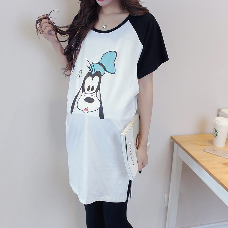 Длинная весенняя летняя футболка для беременных, хлопковое комфортное платье, средней длины, короткий рукав