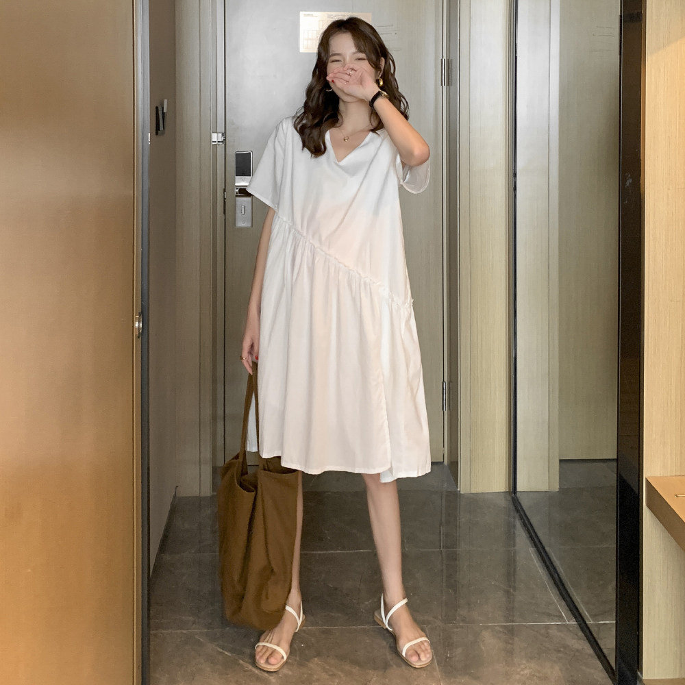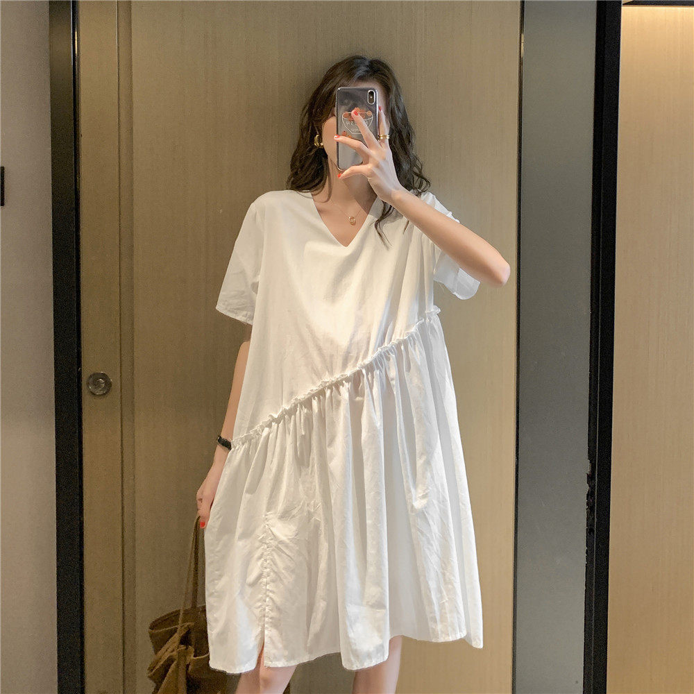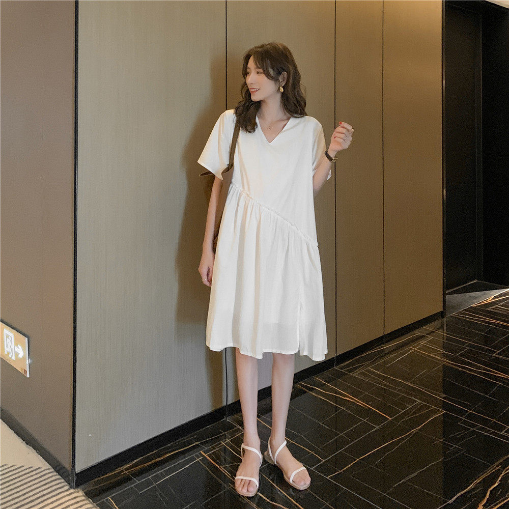 Белая летняя одежда для беременных, модная юбка, длинное платье, короткий рукав, в корейском стиле, средней длины