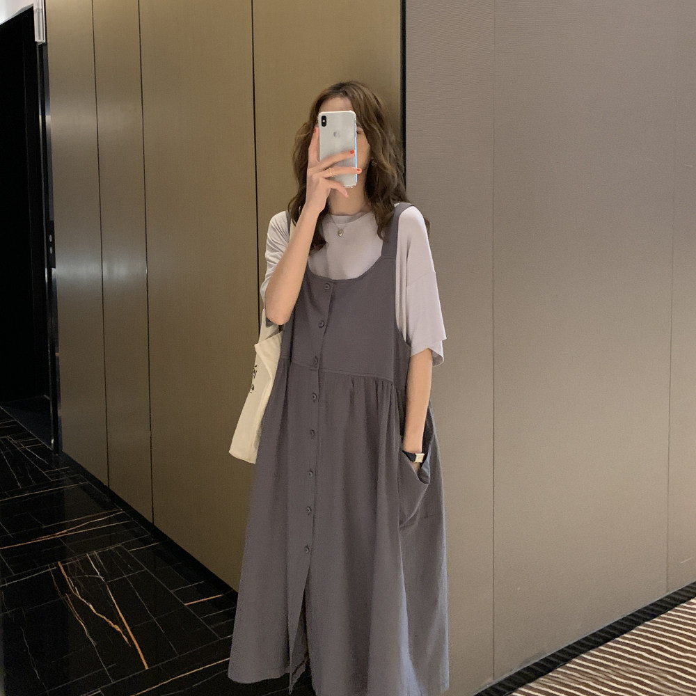 Летняя одежда для беременных, комплект, базовое летнее платье для отдыха, в корейском стиле