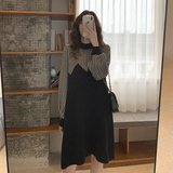 Демисезонный свитер для беременных, модное трикотажное термобелье, базовое длинное платье, юбка, в корейском стиле, длина миди, средней длины