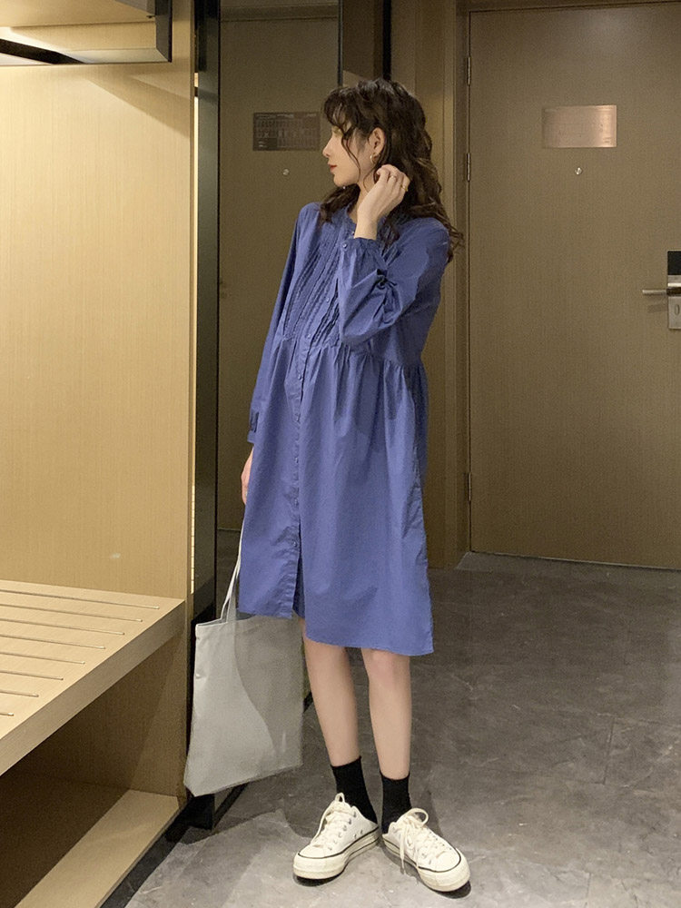 Цветная демисезонная юбка для кормящих грудью для беременных, длинное платье, городской стиль, в корейском стиле, средней длины, в западном стиле