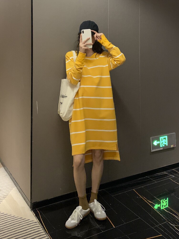 Термобелье для отдыха, модное платье, хлопковый длинный лонгслив, платье-футболка, юбка, популярно в интернете, средней длины