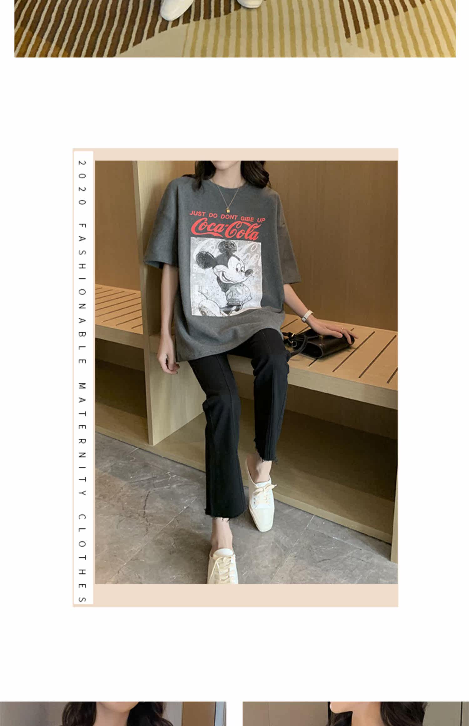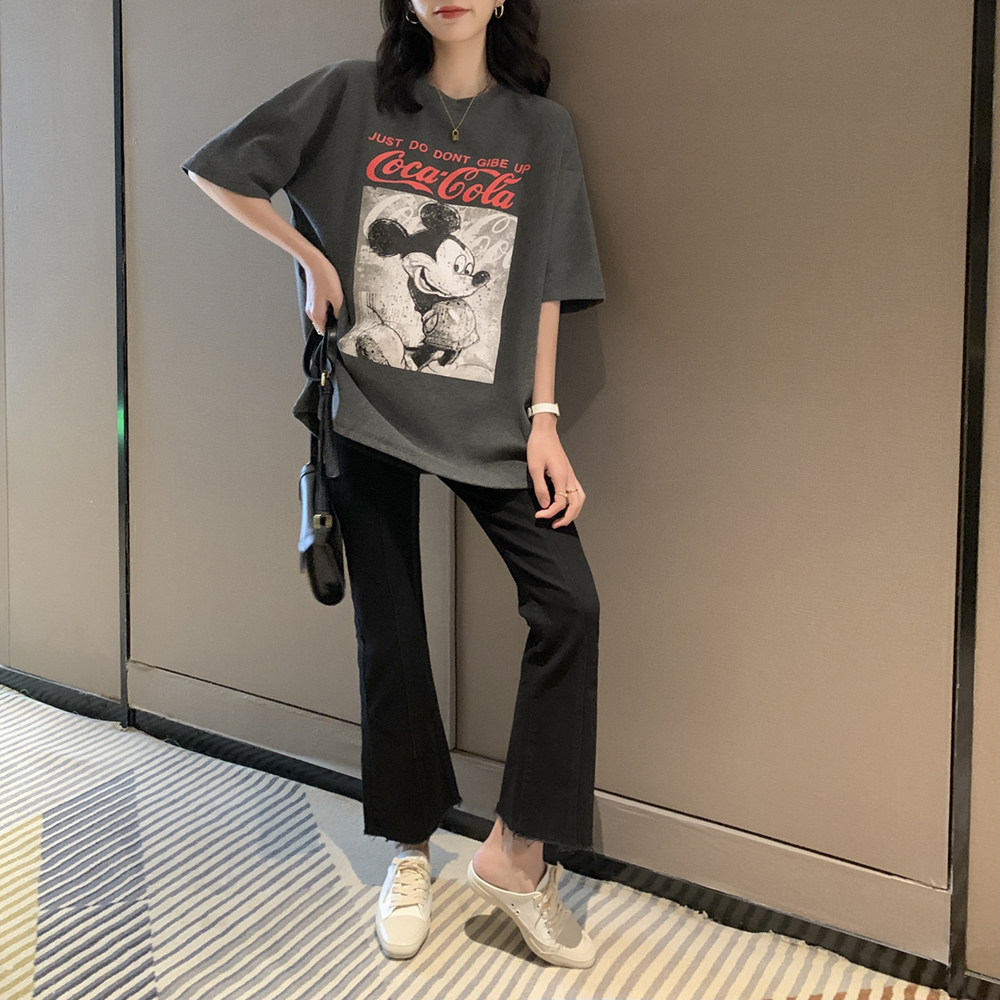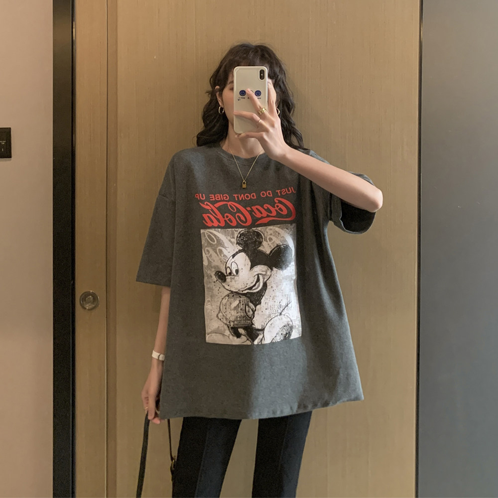 Модная летняя одежда для беременных, мультяшная базовая футболка для выхода на улицу, 2023, популярно в интернете