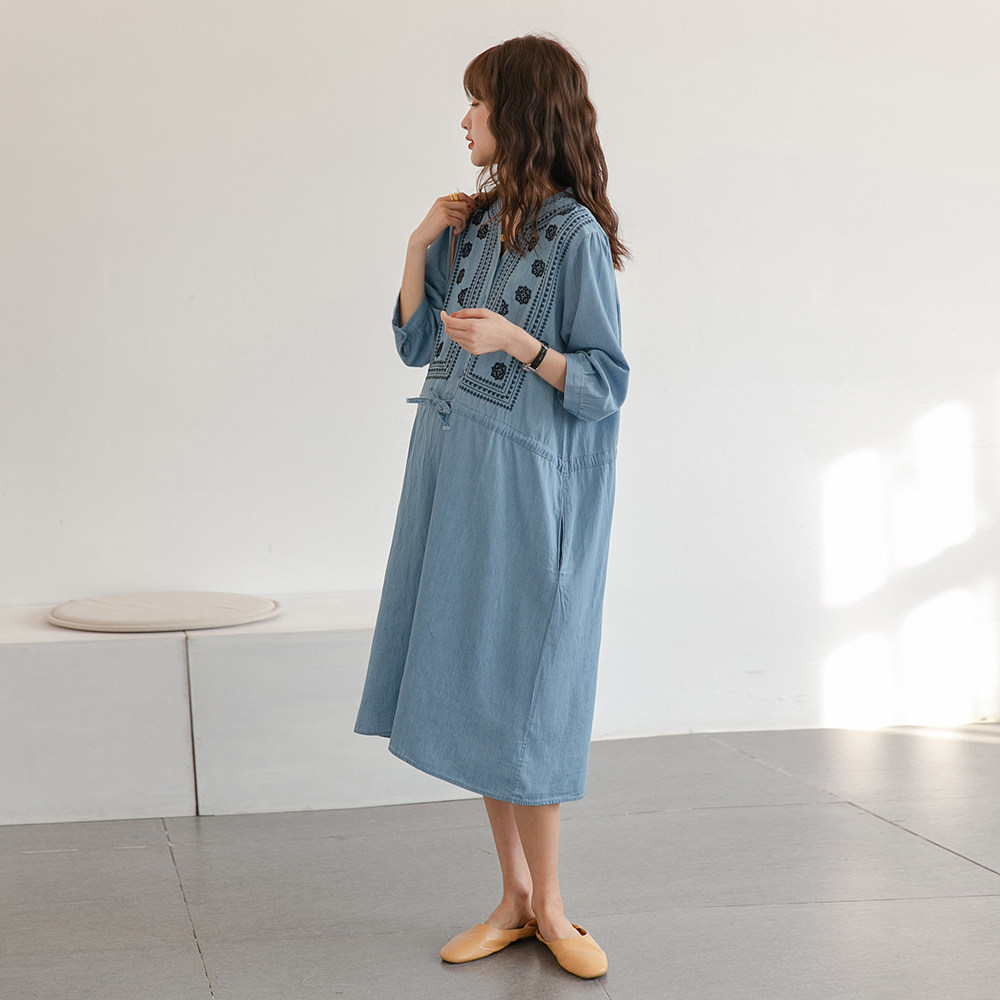 Летняя милая летняя одежда для беременных, длинное платье, юбка, с вышивкой, средней длины, свободный крой