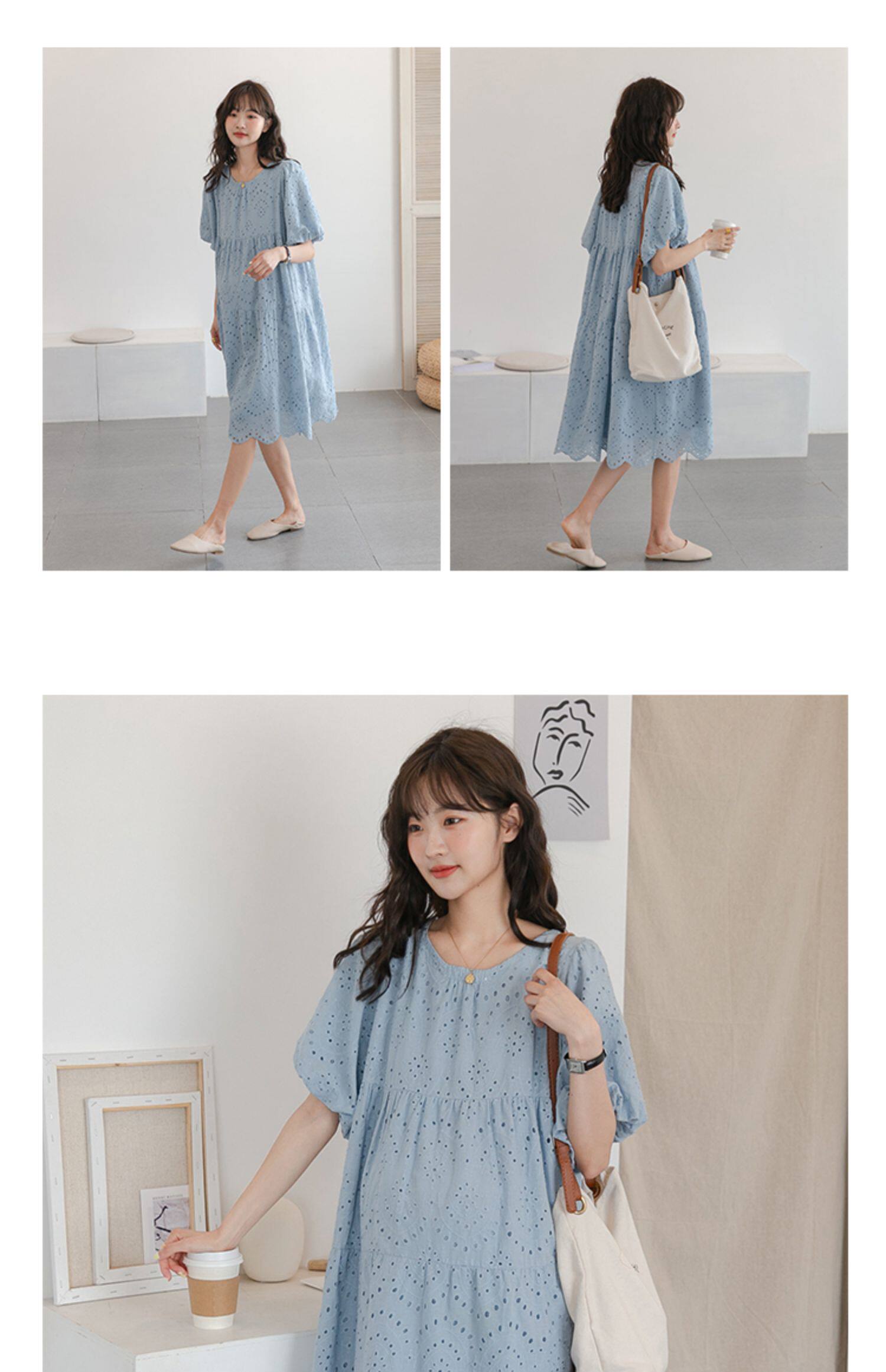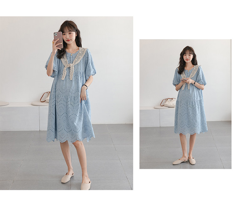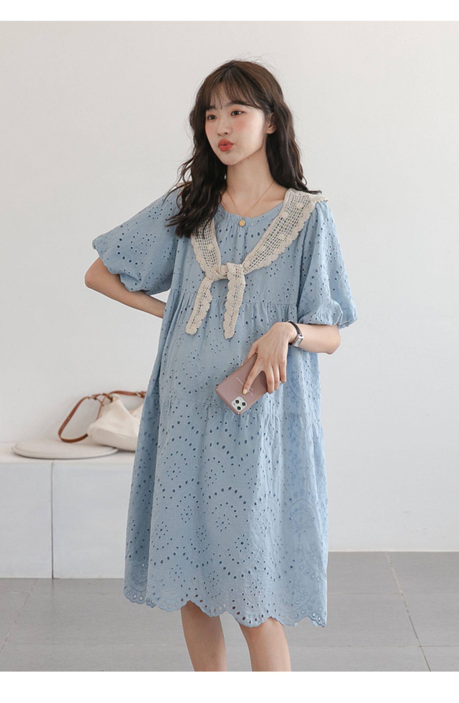 Дизайнерская морская соль, дышащая летняя одежда для беременных, кружевное хлопковое платье, свободный крой