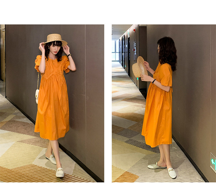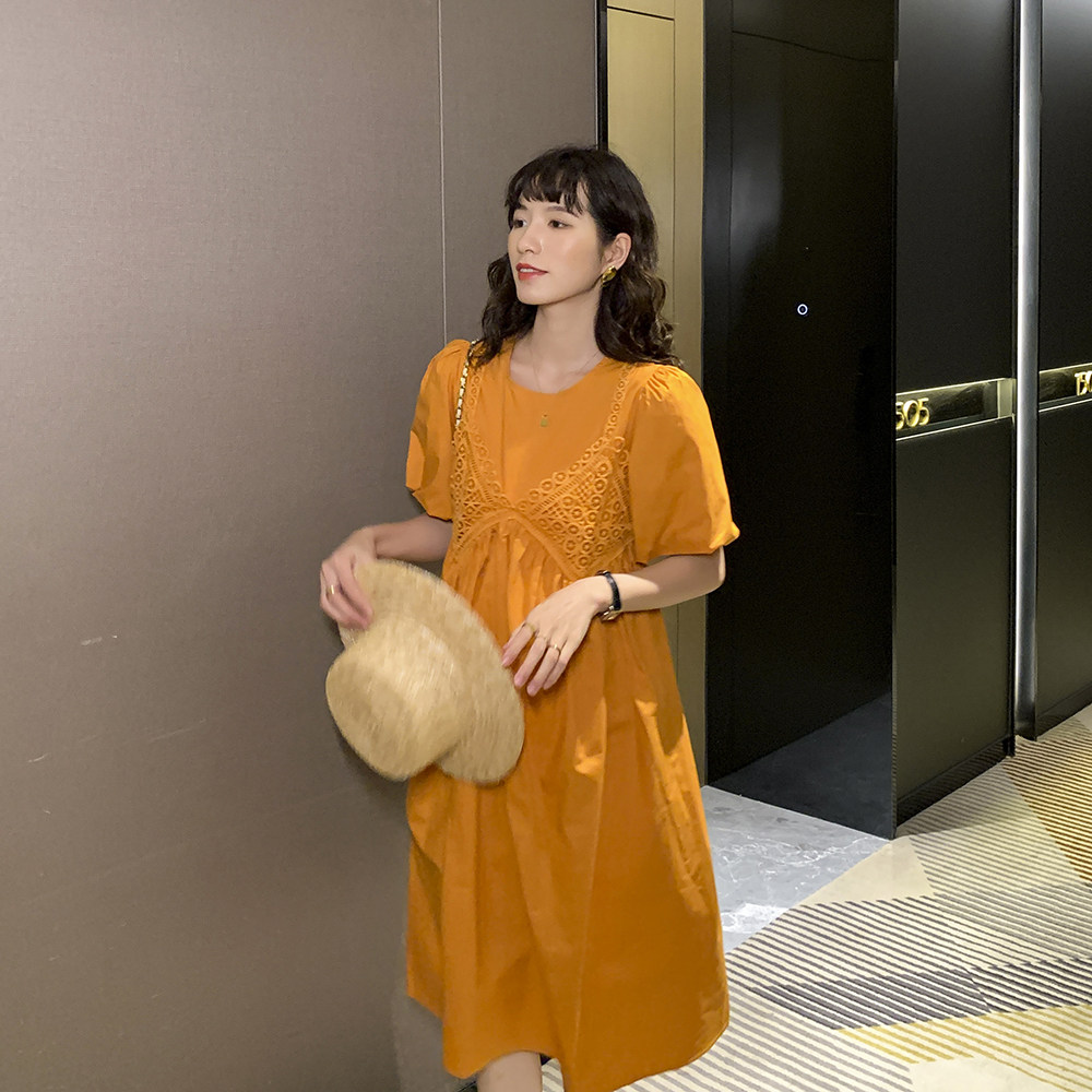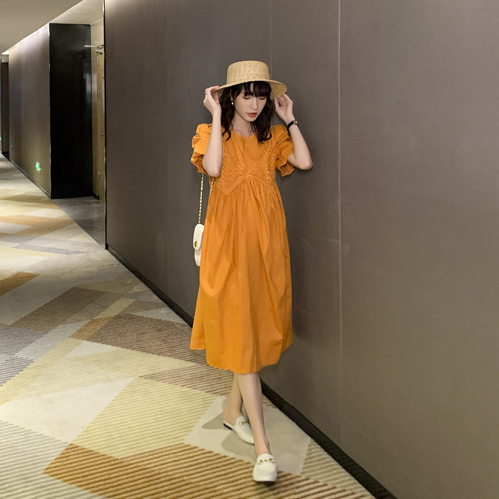 Летний кружевной комплект для беременных, платье, французский стиль, высокая талия