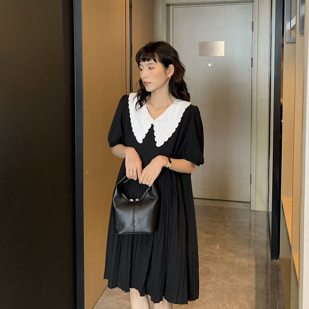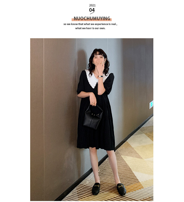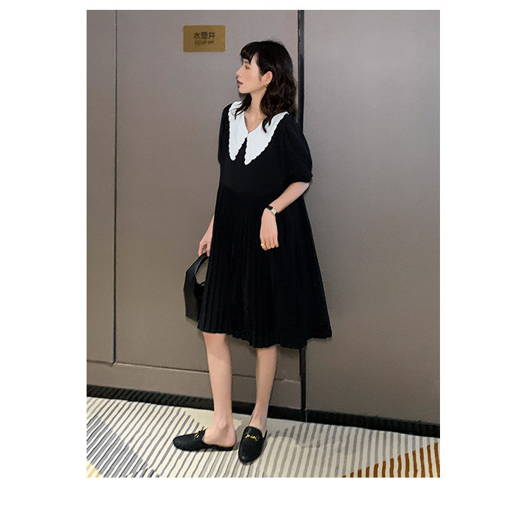 Летнее платье для беременных, кукла, шифоновая юбка в складку, изысканный стиль, яркий броский стиль, в западном стиле, кукольный воротник, высокая талия, по фигуре