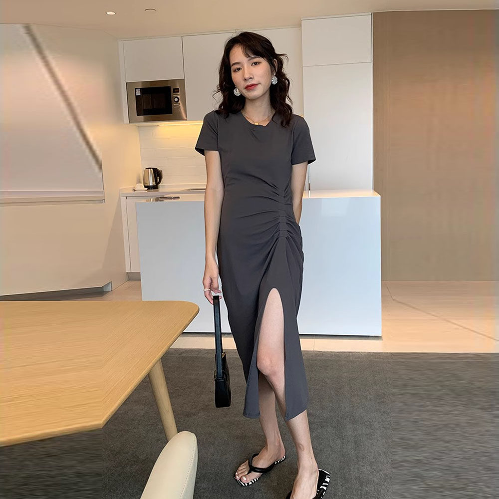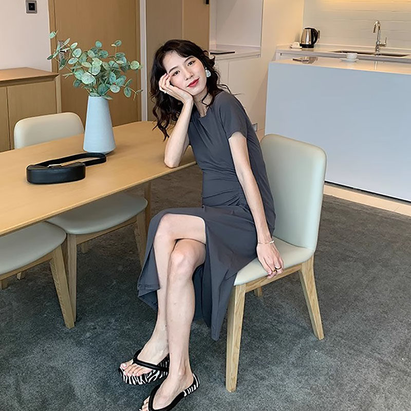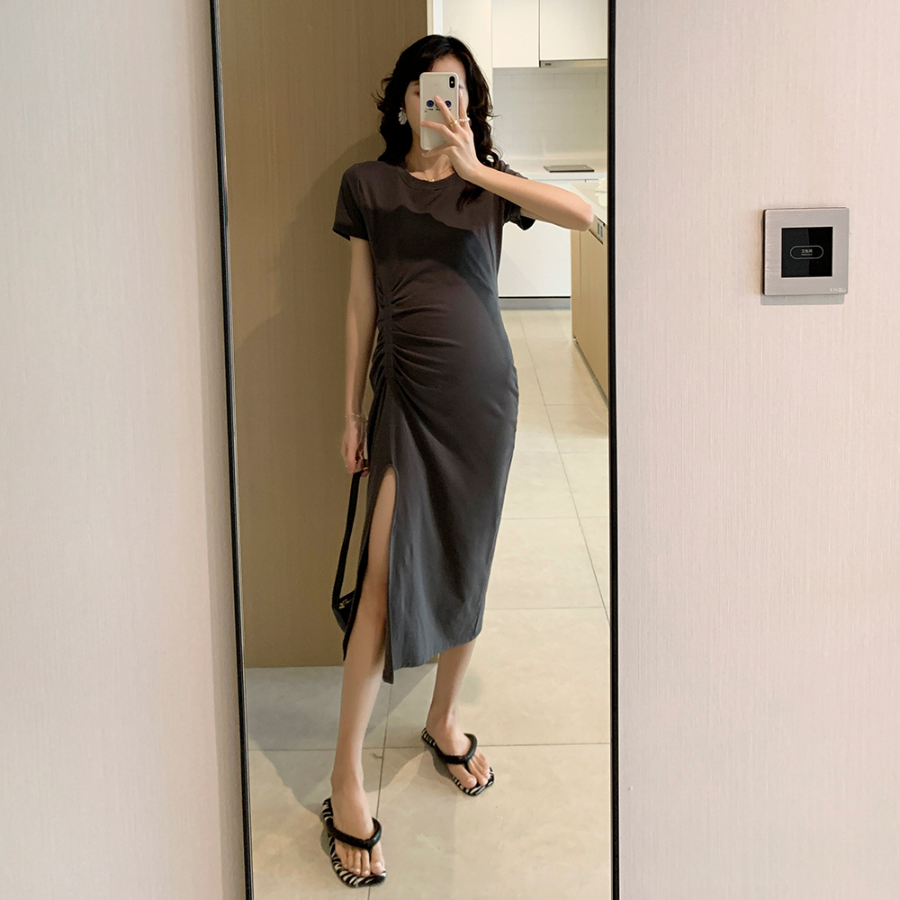 Летняя эластичная юбка для беременных, приталенное платье, черная летняя одежда, платье-футболка, короткий рукав