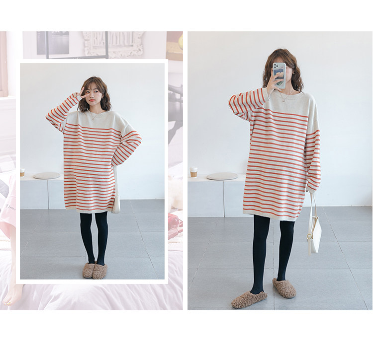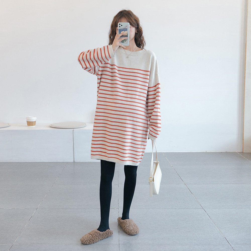 Трикотажное базовое платье для беременных, по фигуре, осеннее, в корейском стиле, длина миди