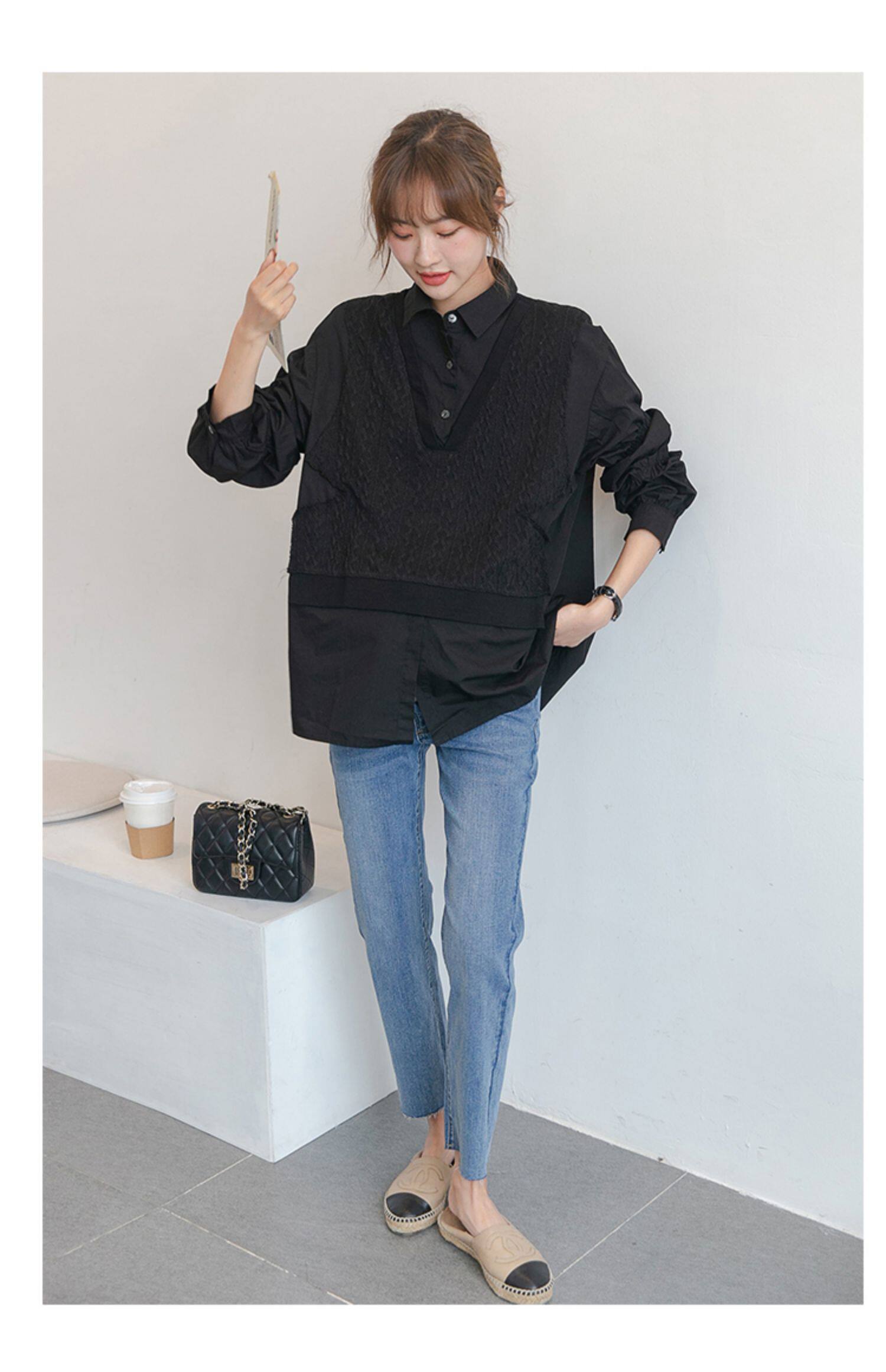 Осенняя небольшая рубашка для беременных, трикотажный жилет, изысканный стиль, подходит для подростков