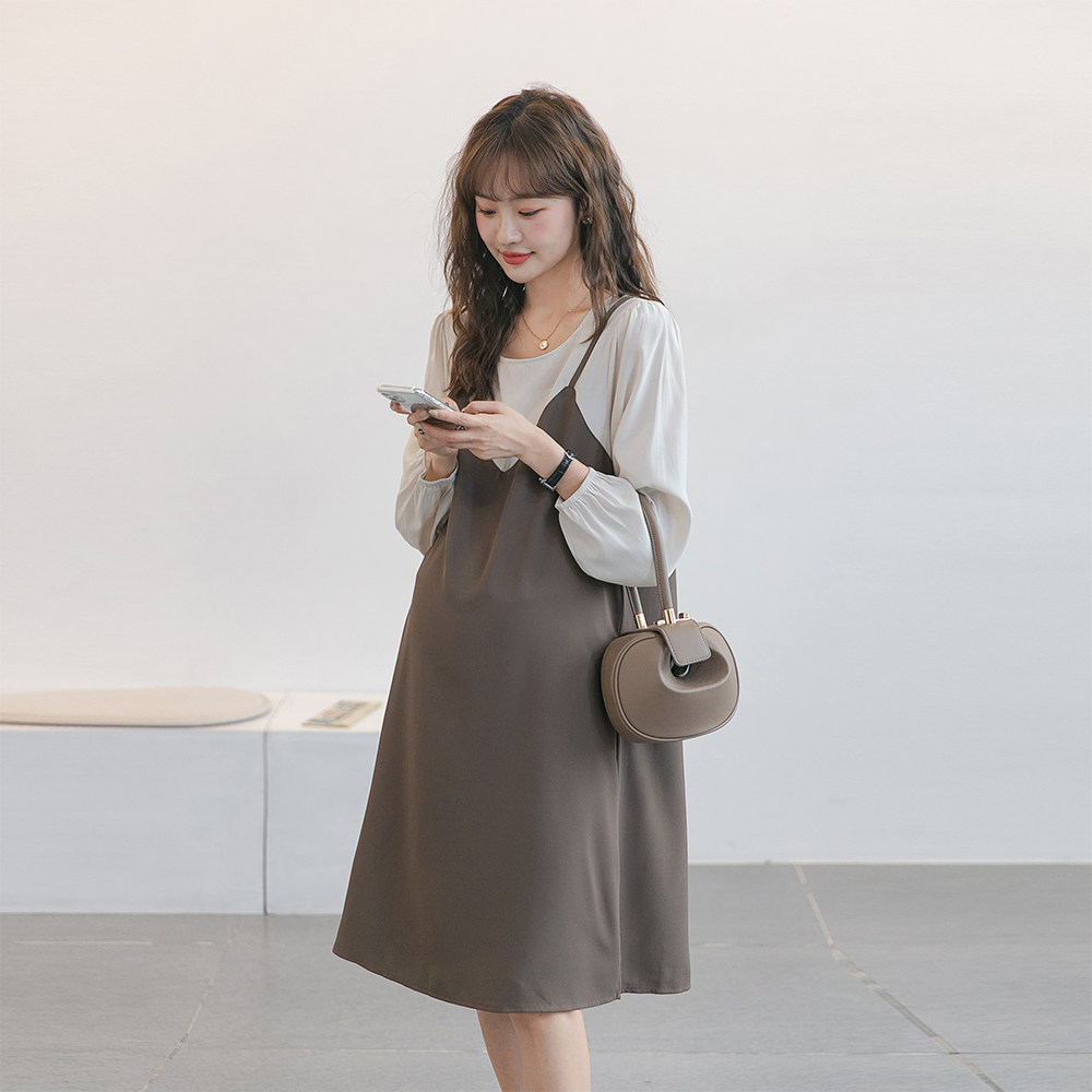 Весенний вместительный и большой базовый комплект для беременных, платье, изысканный стиль, большой размер, эффект подтяжки