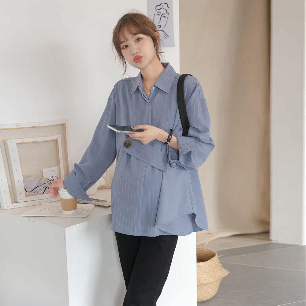 Весенняя рубашка для беременных, тренд сезона, в корейском стиле, свободный крой, в западном стиле
