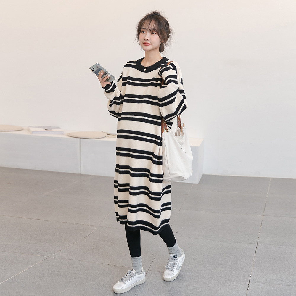 Длинный зимний свитер для беременных для отдыха, платье, средней длины, большой размер, оверсайз, увеличенная толщина
