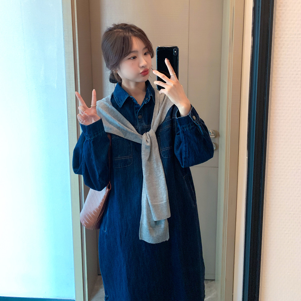 Tide, осеннее демисезонное платье, ретро японская трендовая джинсовая юбка для беременных, подходит для подростков