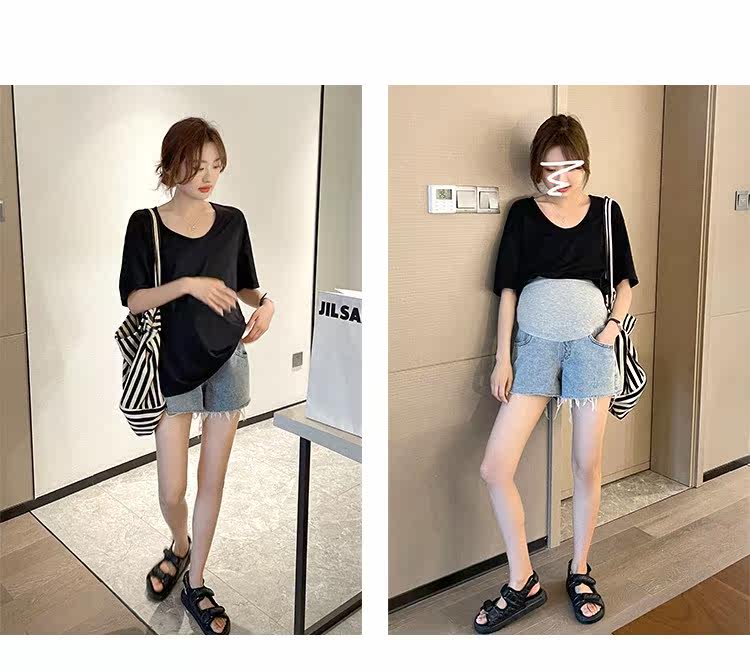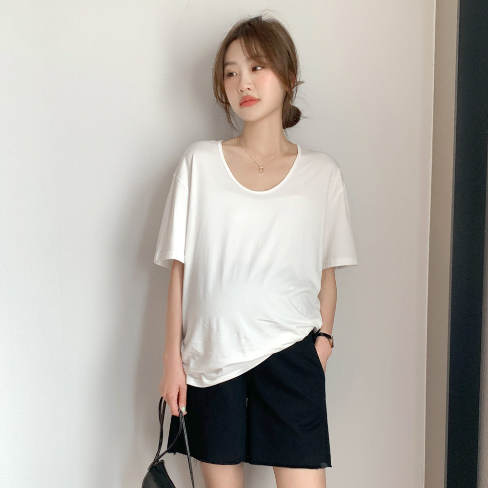 Летняя модная базовая футболка с коротким рукавом для беременных, в корейском стиле, в западном стиле
