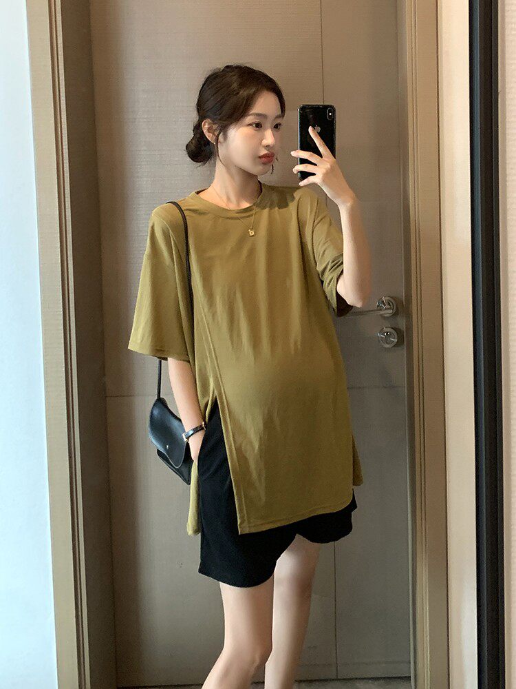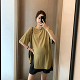 Летняя медная шелковая футболка для беременных для отдыха, в западном стиле, свободный крой