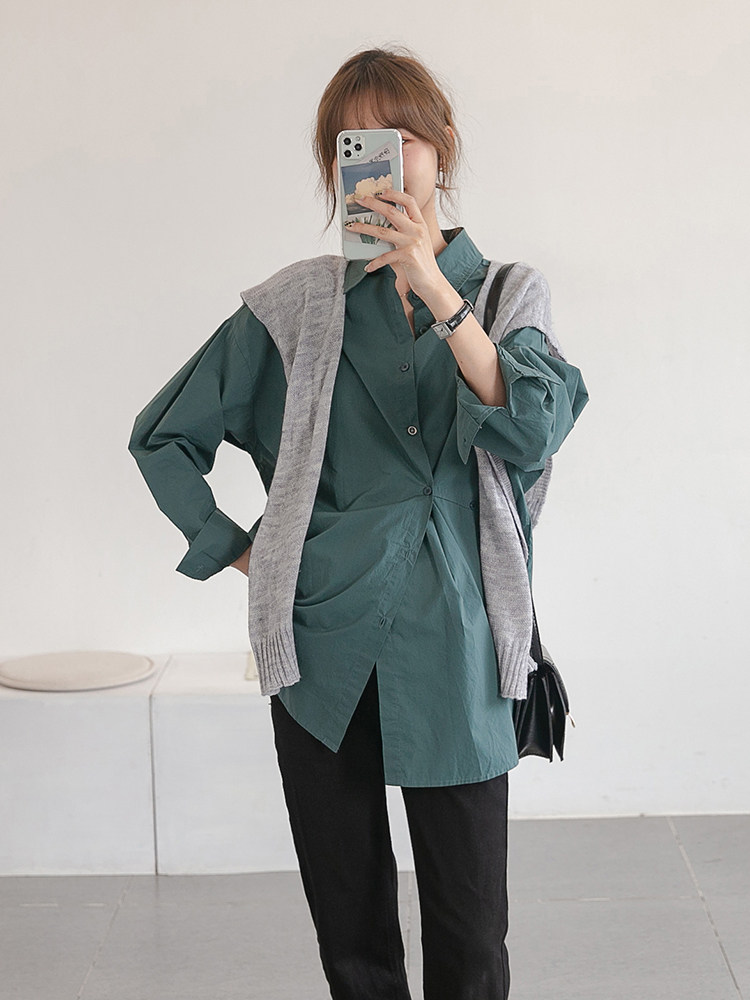 Весенняя небольшая дизайнерская базовая рубашка для беременных, подходит для подростков, тренд сезона, в корейском стиле, свободный крой