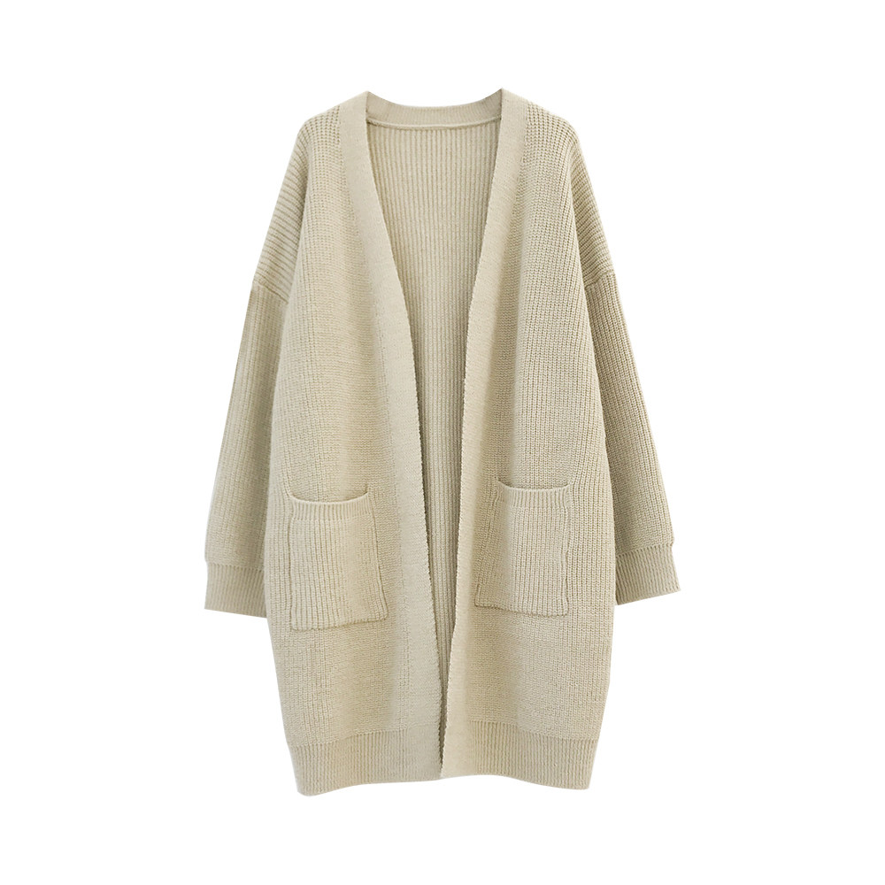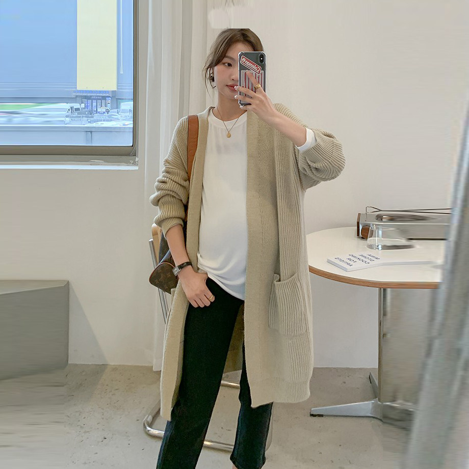Осенний демисезонный кардиган для беременных, свитер, длинная трикотажная куртка, V-образный вырез, средней длины