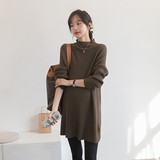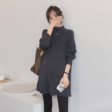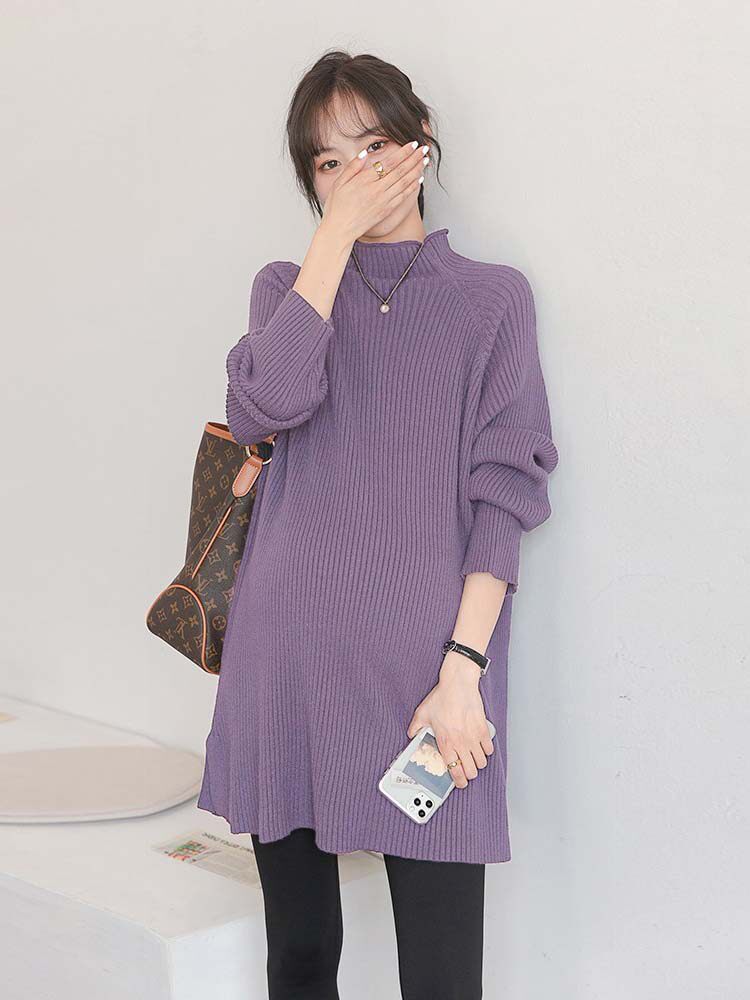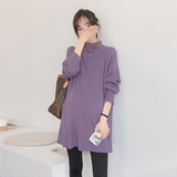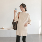 Длинный демисезонный модный трикотажный цветной базовый приятный телу весенний свитер для беременных, средней длины, в корейском стиле, оверсайз
