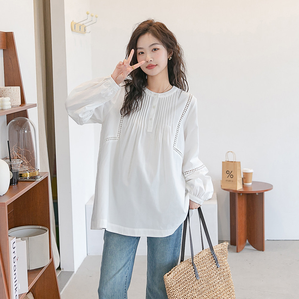 Весенний милый фонарь для беременных, сексуальная рубашка с круглым воротником, свободный крой, изысканный стиль