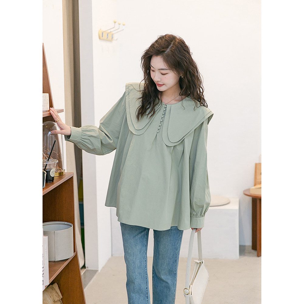 Милая осенняя рубашка для беременных, лонгслив, французский стиль, оверсайз