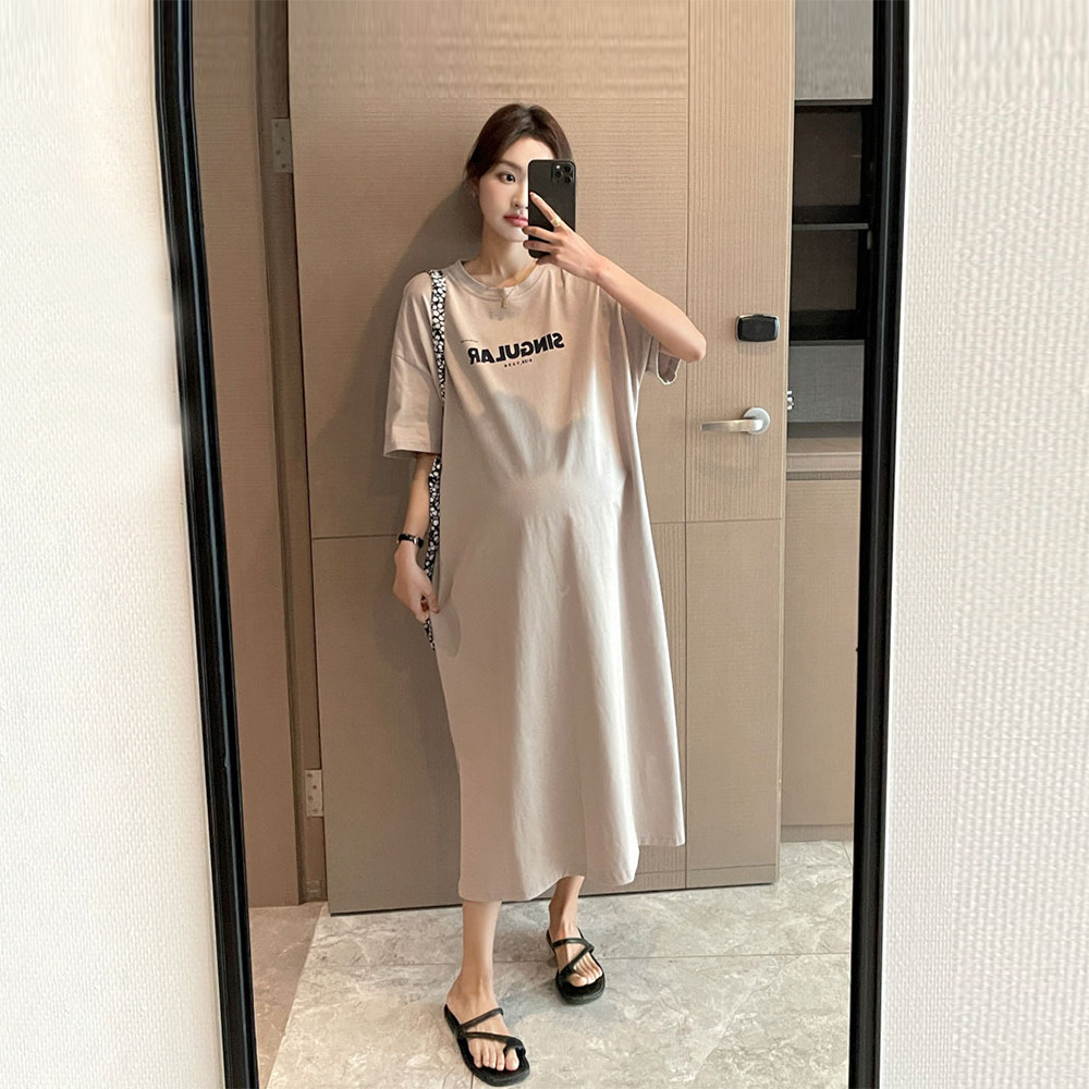 Летнее платье для беременных для отдыха, хлопковая футболка с коротким рукавом, платье-футболка, юбка, большой размер