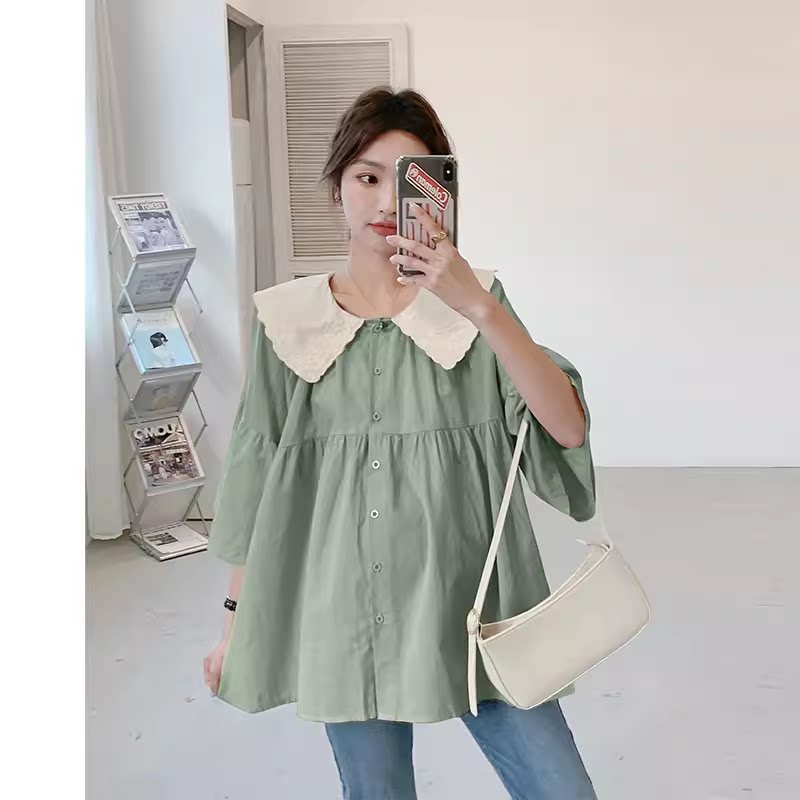 Летняя одежда для беременных, рубашка, мегафон, кружевная кукла для кормящих грудью, с вышивкой, свободный крой, А-силуэт