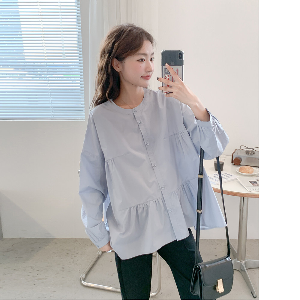 Осенняя рубашка для беременных, милый лонгслив, кукла, французский стиль, оверсайз