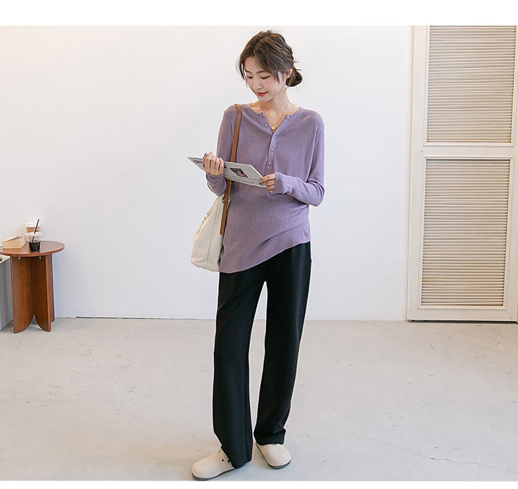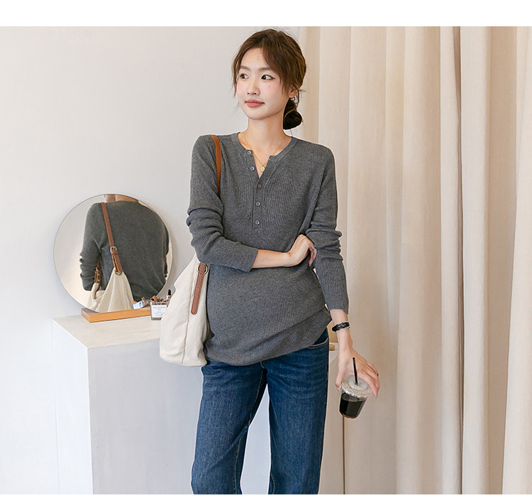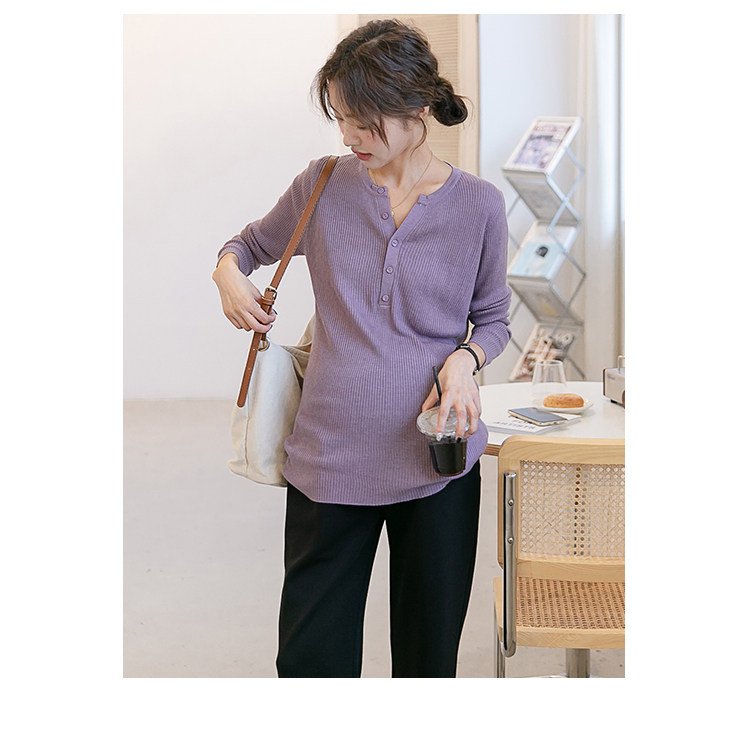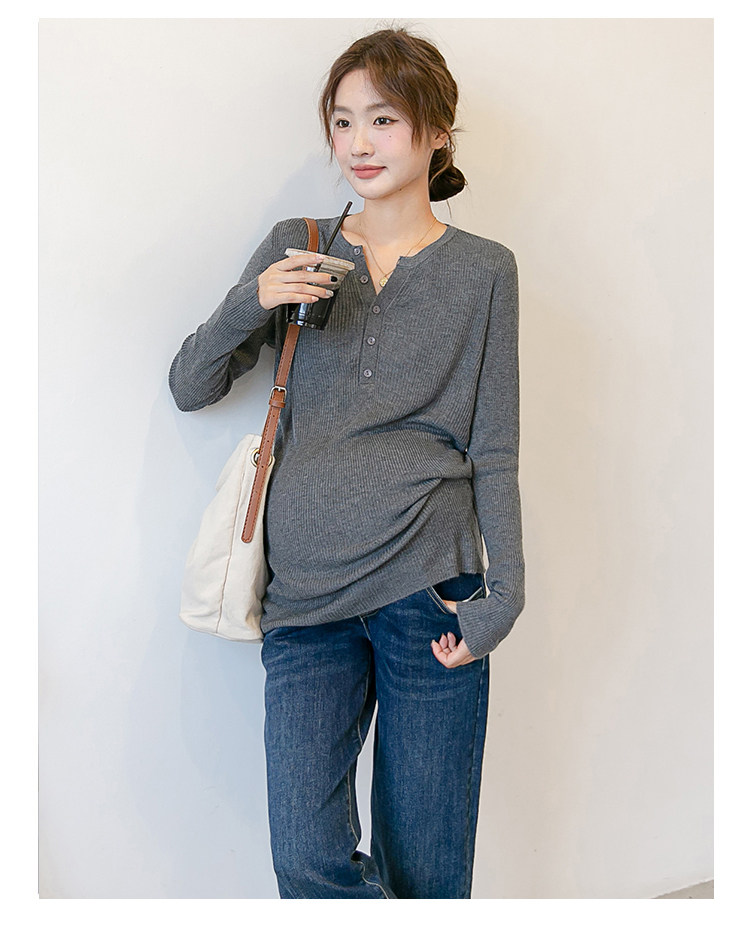 Цветной трикотажный осенний приятный телу лонгслив для беременных, стиль, V-образный вырез