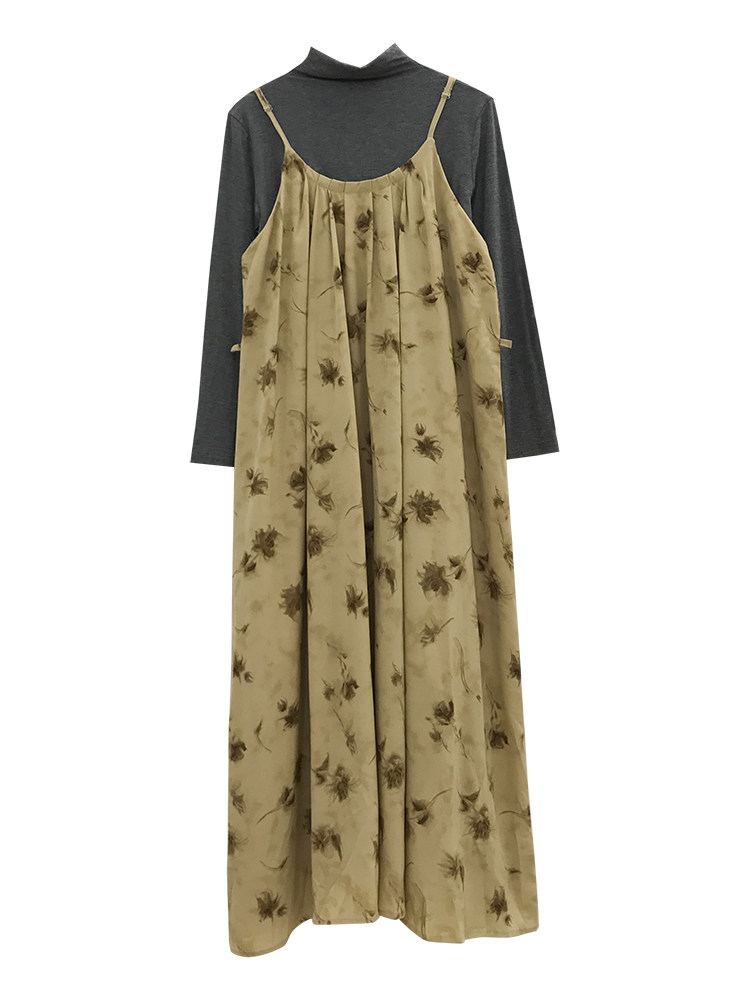Демисезонное платье без рукавов, комплект, ретро платье-комбинация, высокий воротник, цветочный принт, французский ретро стиль