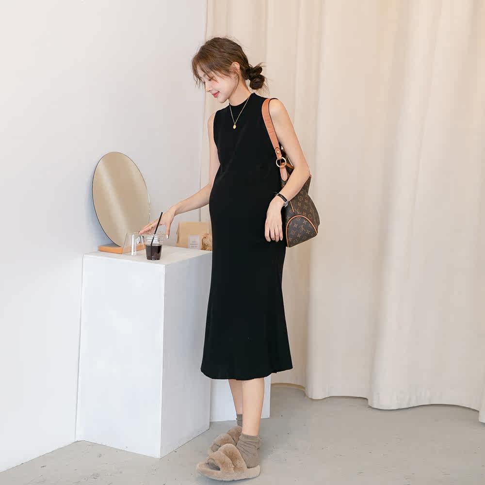 Демисезонное модное элегантное трикотажное платье для беременных, французский стиль