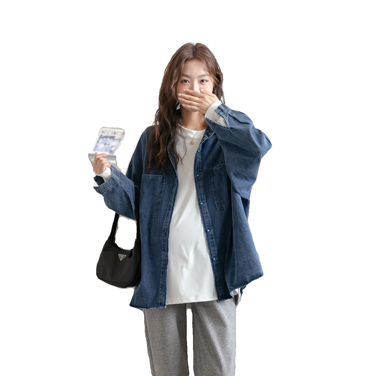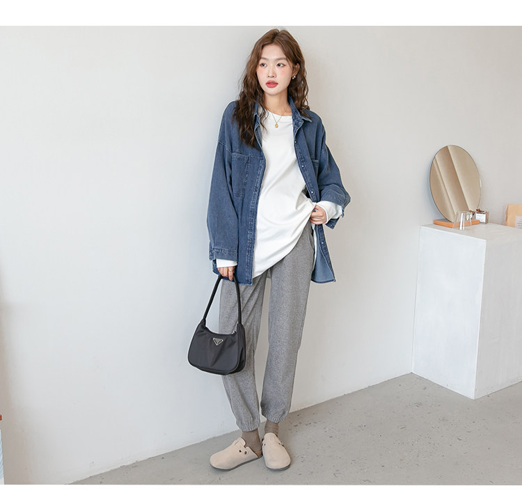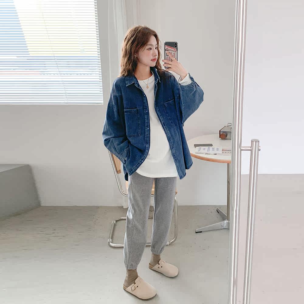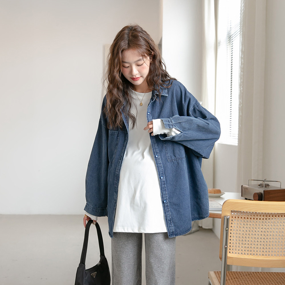 Ретро рубашка для беременных, модный джинсовый кардиган, куртка, осенняя, в американском стиле, в корейском стиле