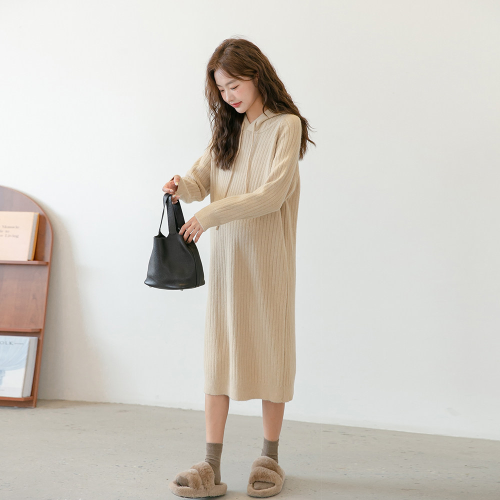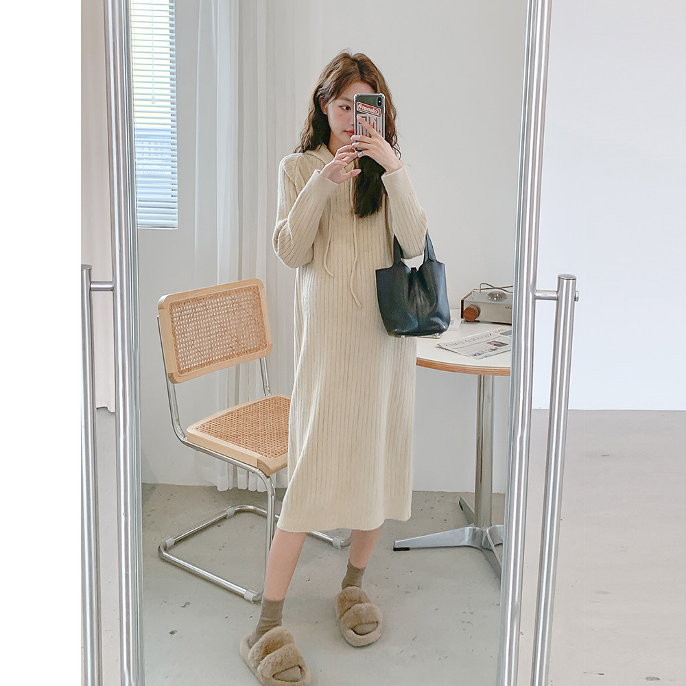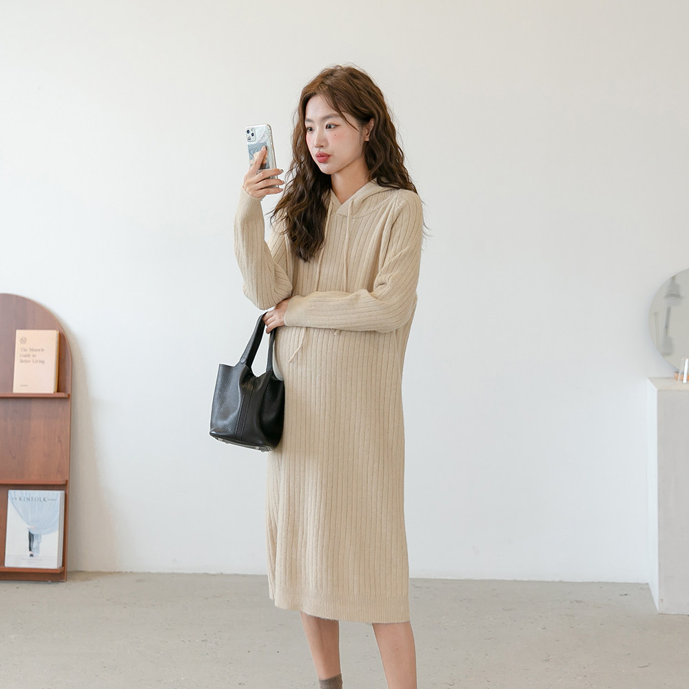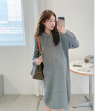 Трикотажная демисезонная юбка для беременных, длинное трикотажное платье для отдыха с капюшоном, в корейском стиле, свободный прямой крой