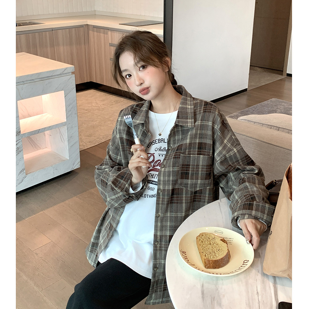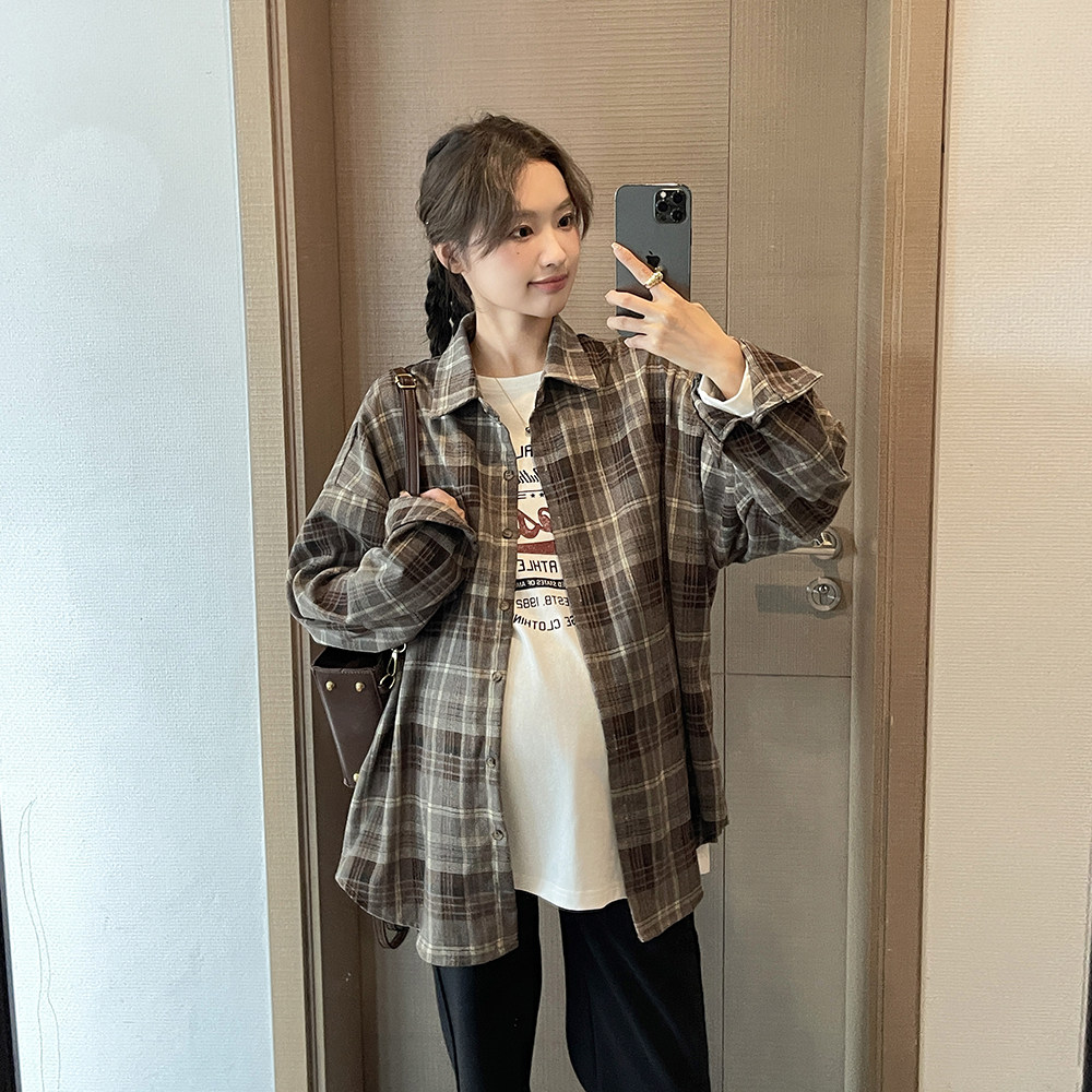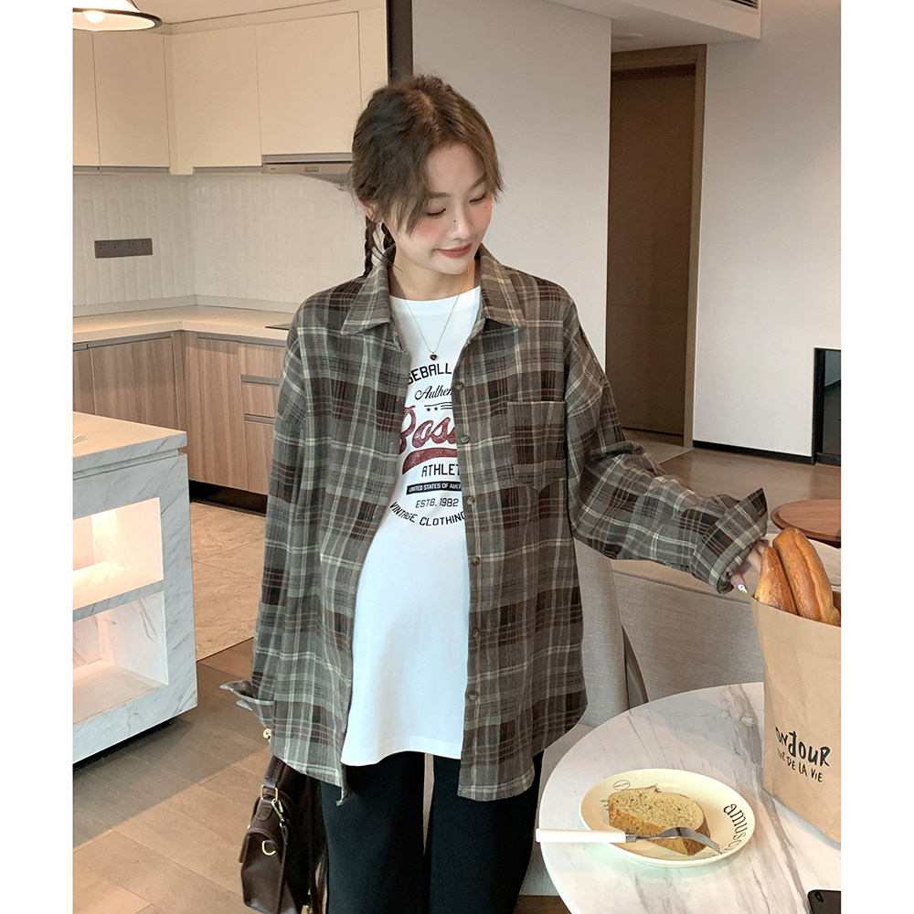 Осенняя демисезонная рубашка для беременных, базовый приятный телу ретро кардиган для отдыха, в корейском стиле, оверсайз