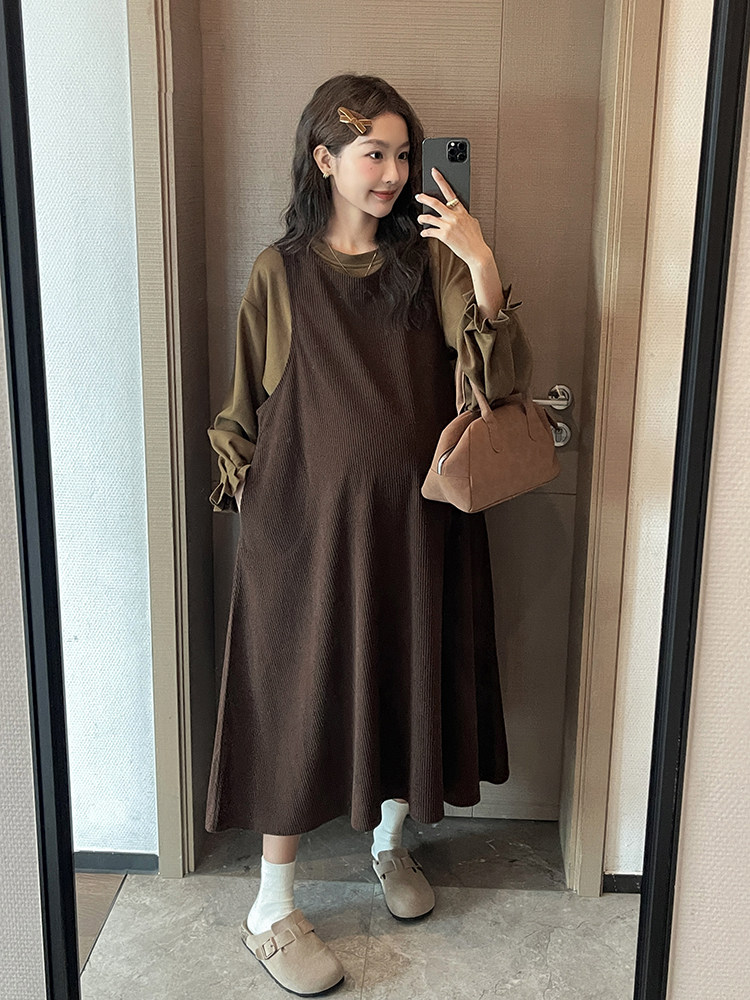 Вельветовое осеннее демисезонное ретро модное милое платье без рукавов для беременных, юбка