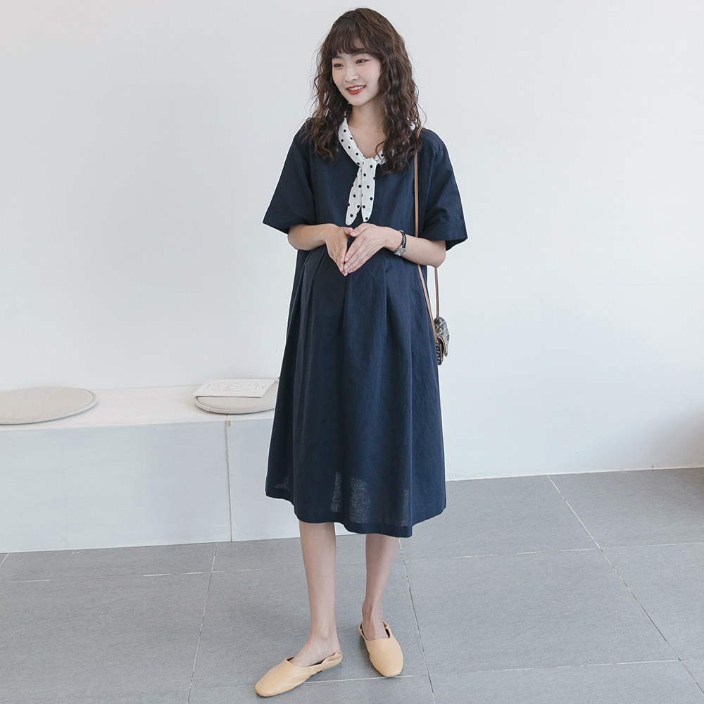 Летняя одежда для беременных, небольшая длинная юбка, платье, в западном стиле, по фигуре, подходит для подростков, свободный крой, из хлопка и льна