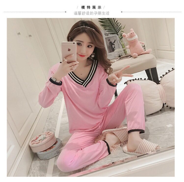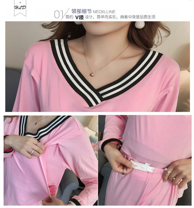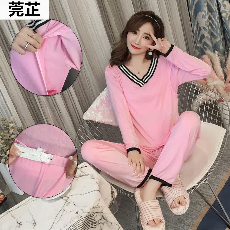 Летний тонкий лонгслив, послеродовая пижама для беременных для кормящих грудью, комплект, большой размер, V-образный вырез