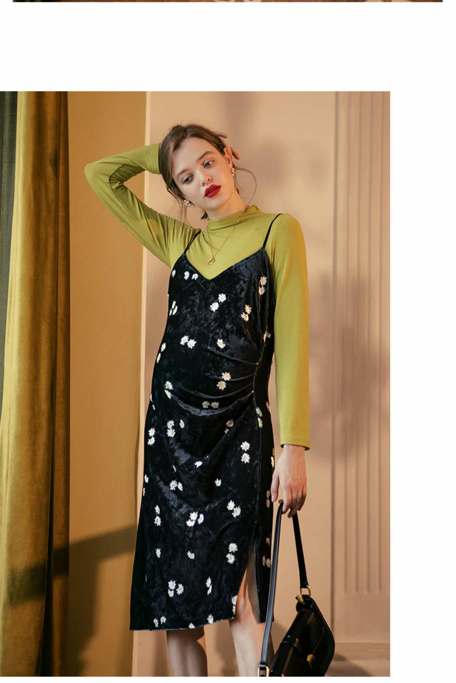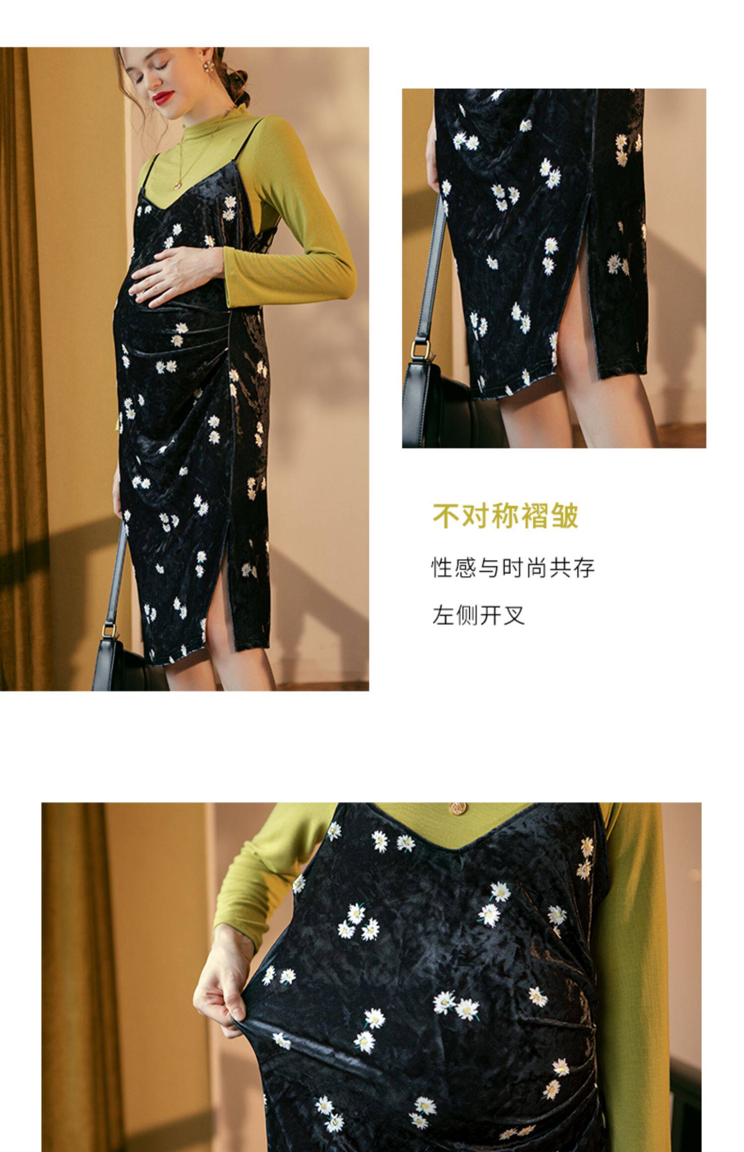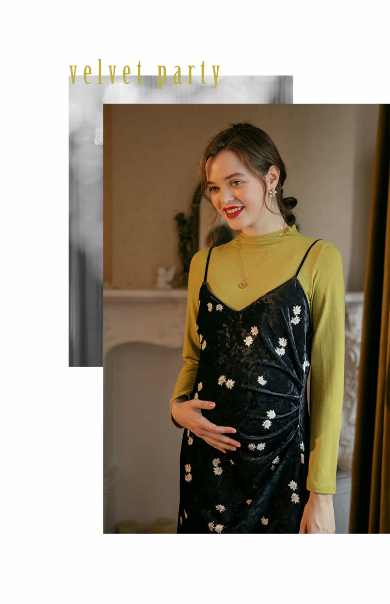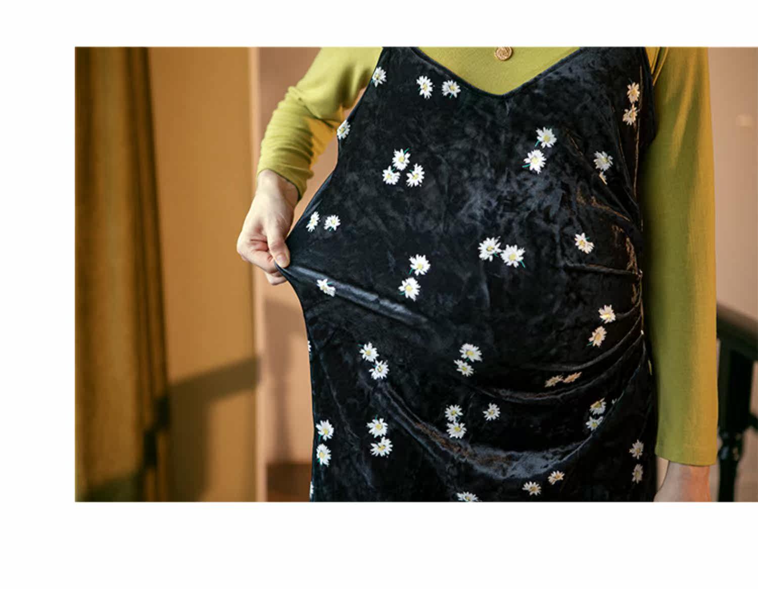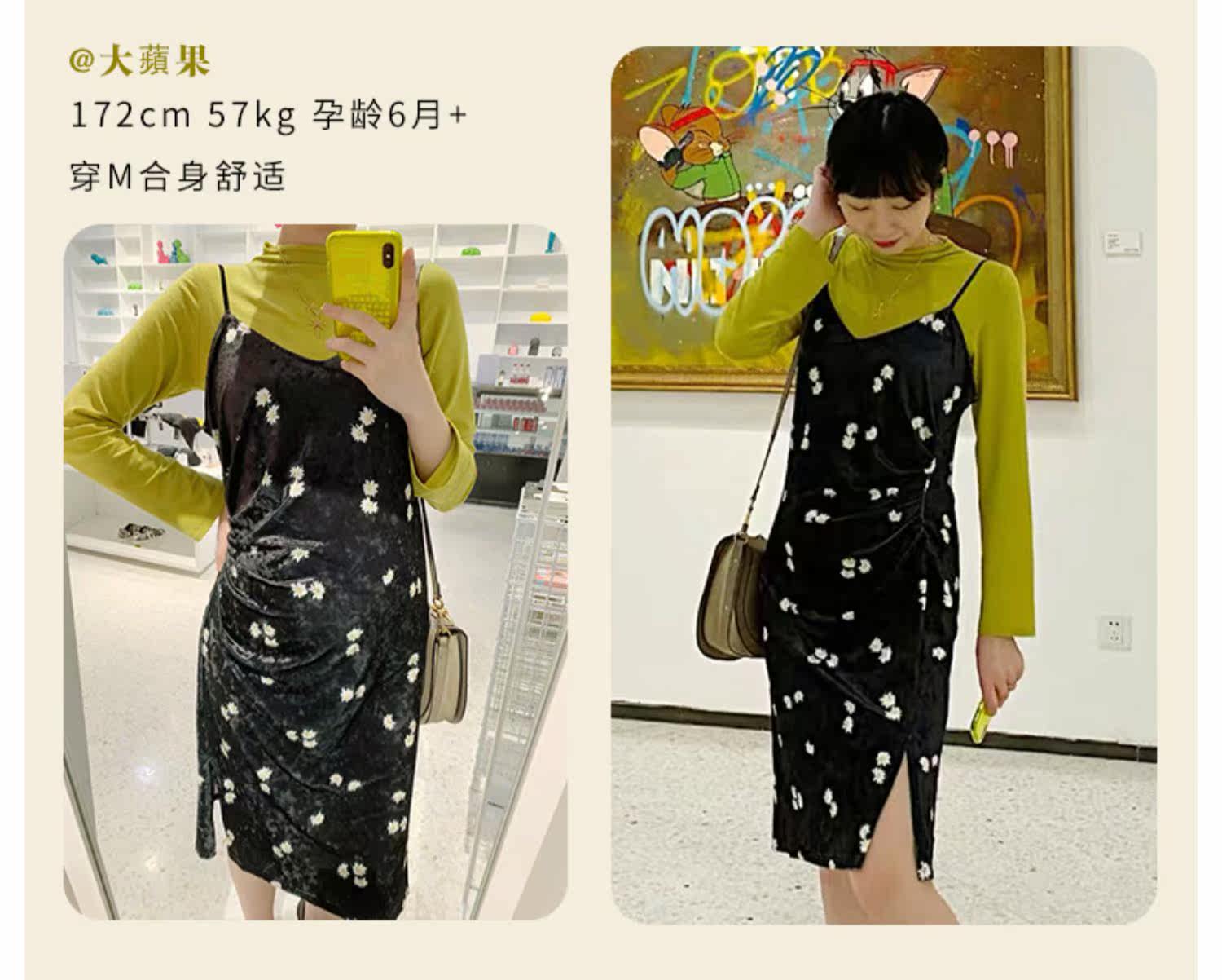 优密儿 Осеннее демисезонное бархатное платье для беременных, платье-комбинация, юбка