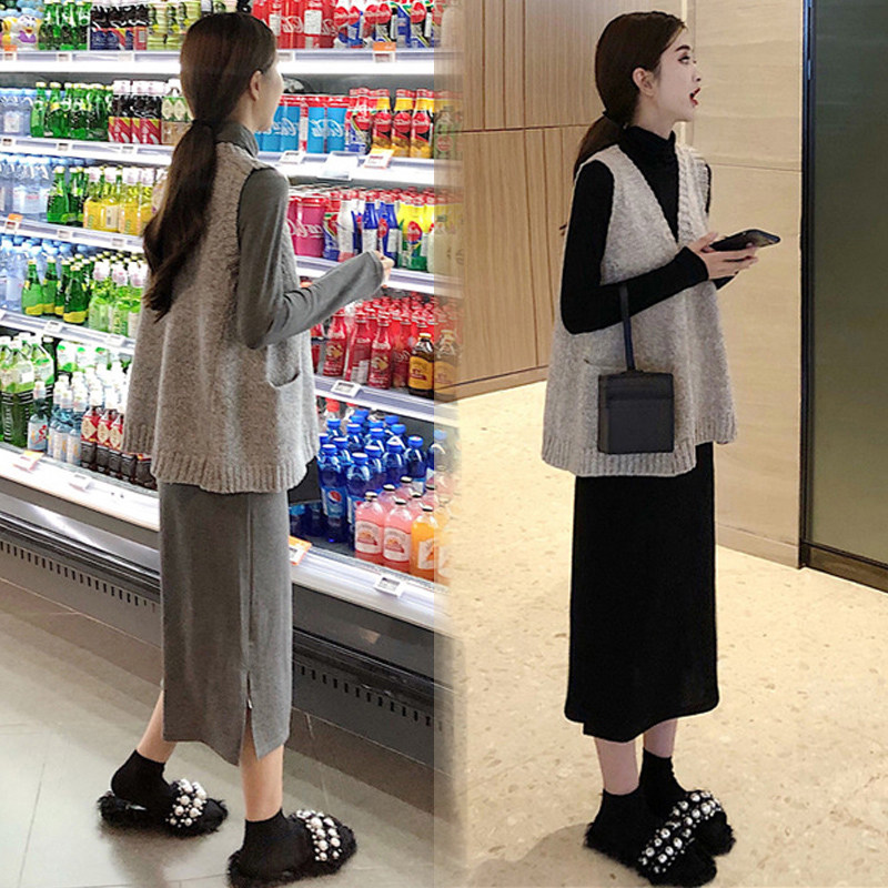 Осенний комплект для беременных, длинная юбка, платье, коллекция 2023, по фигуре, в стиле Шанель