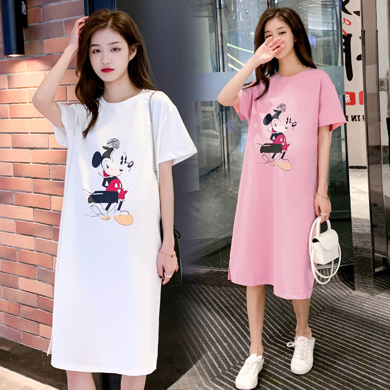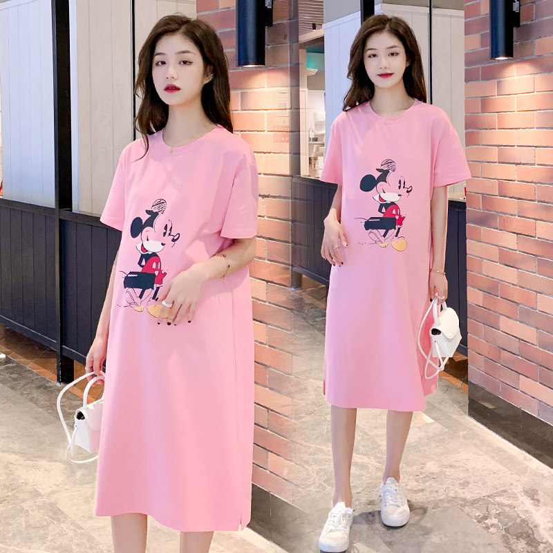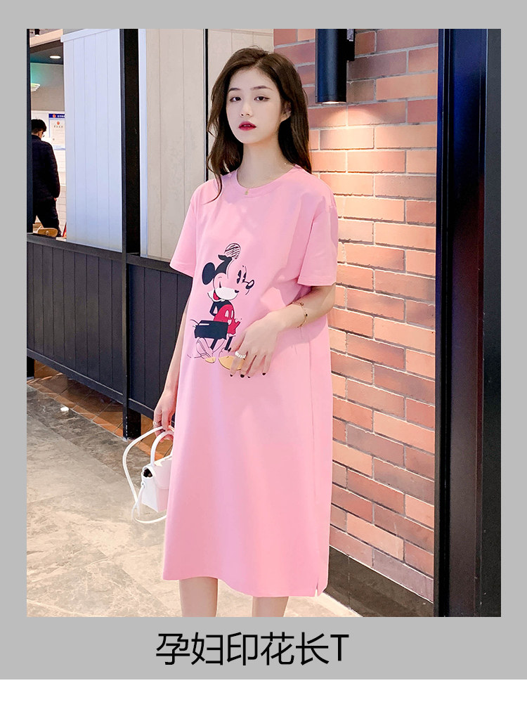 Летнее платье для беременных, юбка, модная летняя одежда, летняя тонкая длинная футболка с коротким рукавом, средней длины