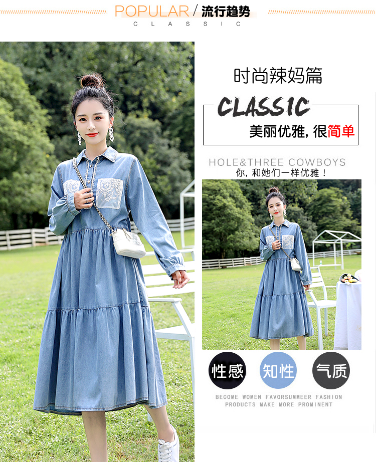 Лонгслив для беременных, джинсовая юбка для кормящих грудью, осенний, в корейском стиле